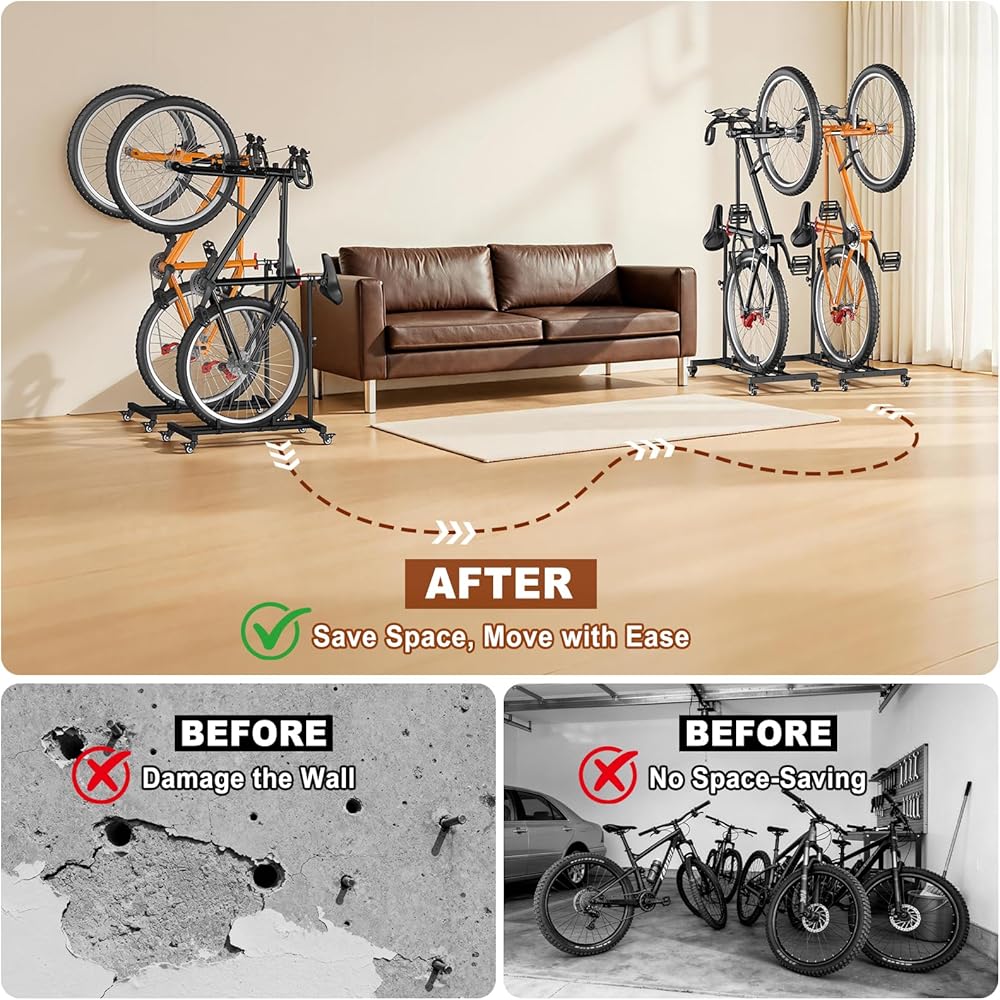 【التجميع والحفر بدون أدوات】: على عكس البدائل الدائمة المثبتة على الحائط، لا يتطلب حامل دراجة المرآب القائم بذاته أي حفر أو تلف في الحائط أو تركيب احترافي. تستغرق عملية التجميع المباشرة دقائق معدودة فقط باستخدام الدليل والأجهزة المضمنة. مثالي للمستأجرين أو أي شخص يبحث عن حل تخزين نظيف وخالي من الأضرار ويمكن نقله حسب الحاجة دون ترك علامات أو ثقوب.