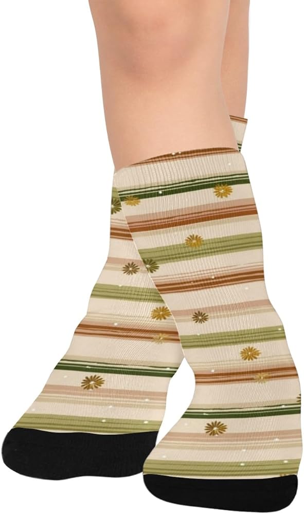 جوارب Harvest Stripe Brown Art للتنزه سيرًا على الأقدام - جوارب شتوية حرارية سميكة دافئة للأولاد والبنات للمدرسة، والارتداء اليومي والأنشطة الخارجية