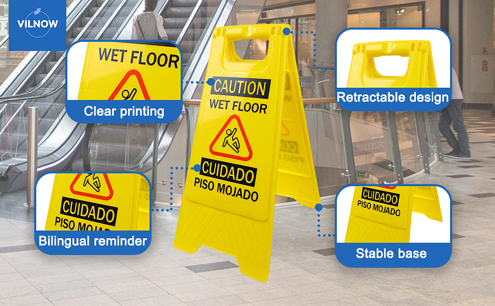 تخزين مريح: يمكن طي اللافتة المضادة للانزلاق على شكل حرف A لسهولة التخزين والنقل، دون شغل مساحة كبيرة.