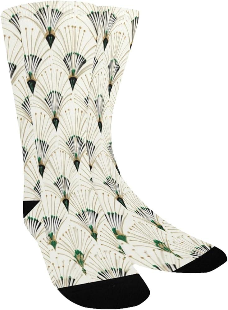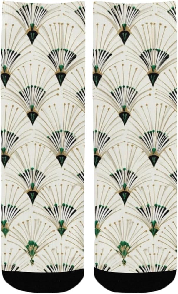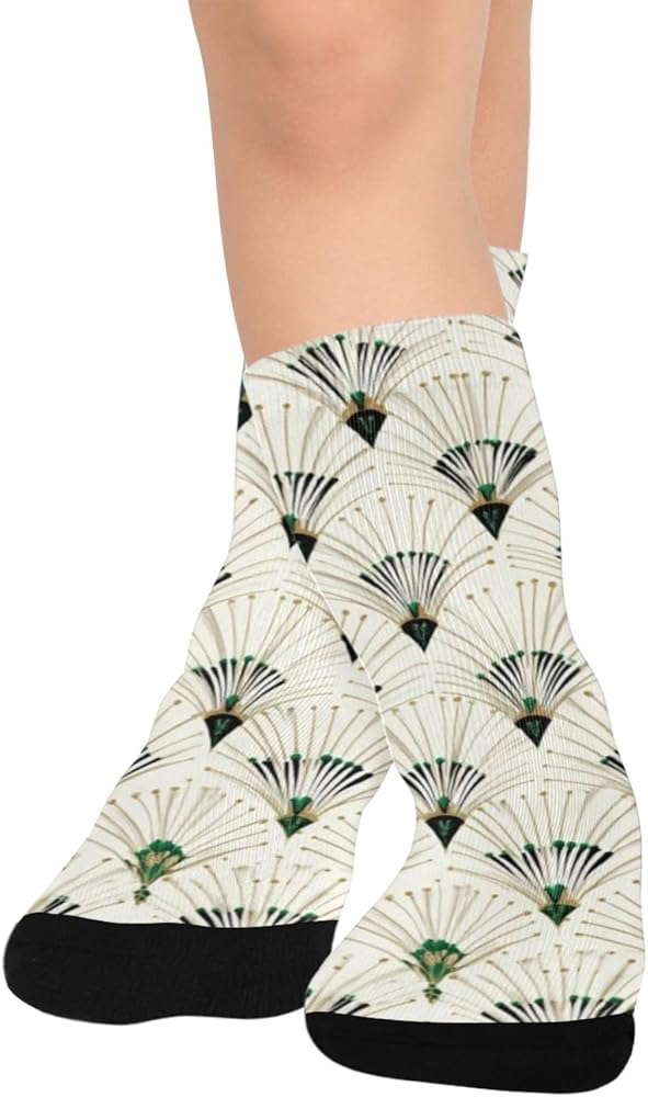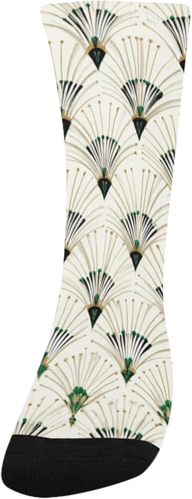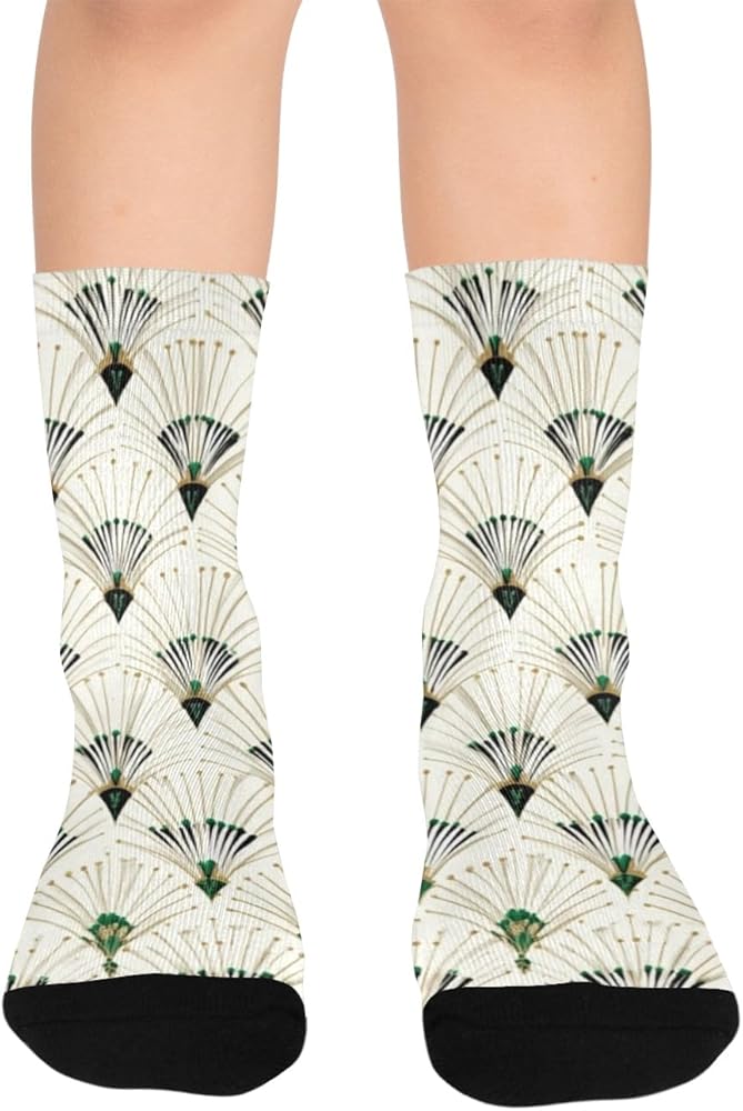 جوارب المشي لمسافات طويلة باللون الأخضر بطباعة مروحة شرقية - جوارب شتوية حرارية سميكة دافئة للأولاد والبنات الصغار للمدرسة، والارتداء اليومي والأنشطة الخارجية