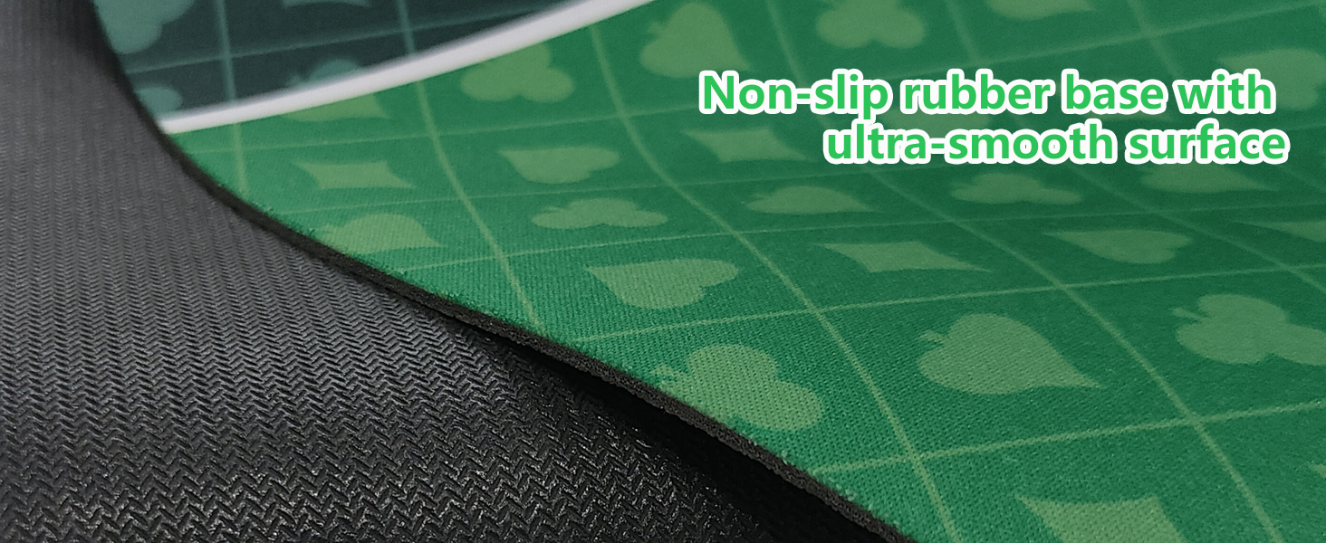 مقاومة للانزلاق على كلا الجانبين: يمكن للقاعدة المطاطية غير القابلة للانزلاق أن تمسك بسطح المكتب بقوة لتوفير تشغيل مستقر عندما تكون اللعبة في اللحظة الحاسمة. كما أن الملمس غير القابل للانزلاق الموجود في الجزء السفلي منه يعزز احتكاكه حتى لا يؤثر على التعامل مع البطاقات أثناء ممارسة الألعاب