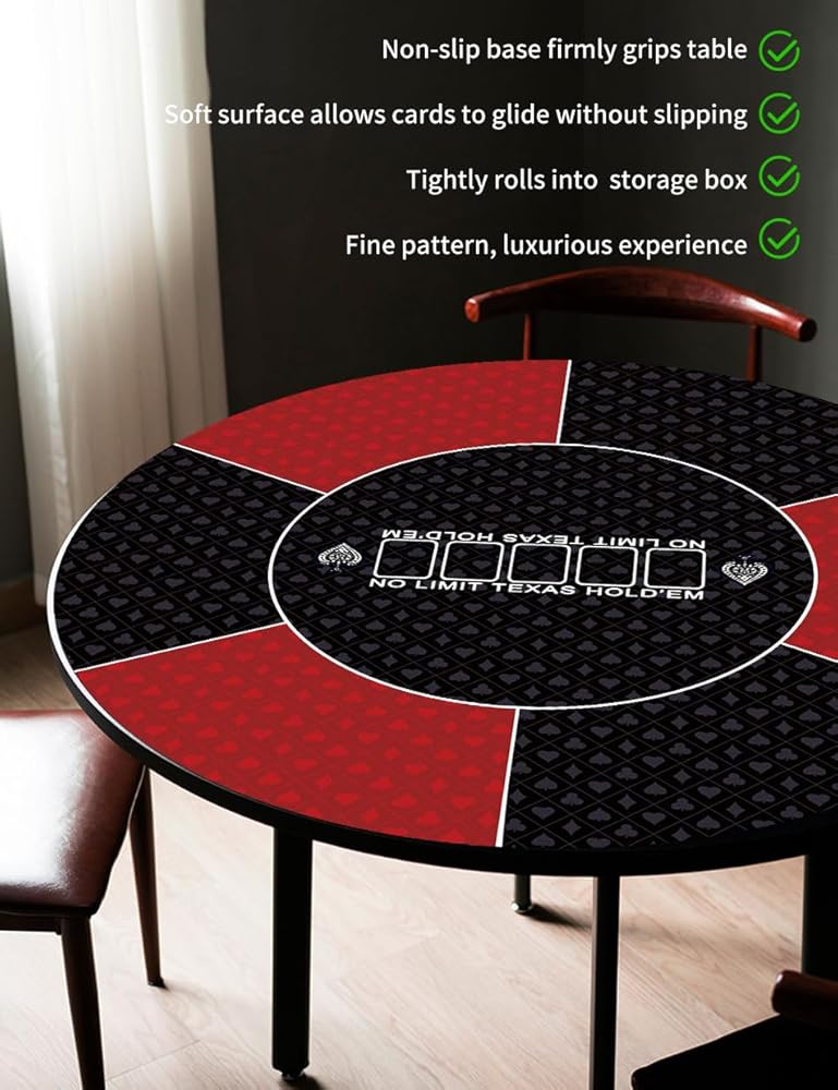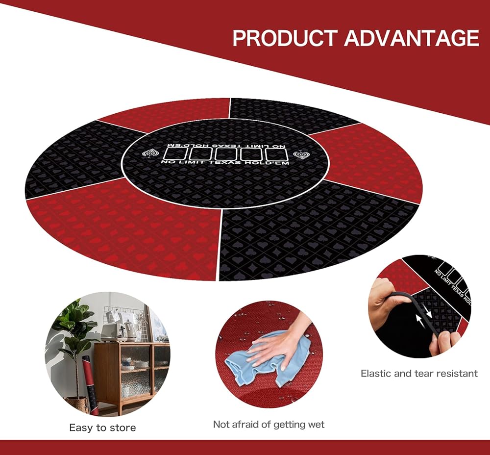 حصيرة طاولة البوكر متعددة اللاعبين: يمكن لسجادة البوكر المستديرة المتينة هذه أن تحول أي طاولة إلى طاولة ألعاب بوكر احترافية. الحجم المثالي يمكن أن يدعم العديد من اللاعبين. يمكنك لعب ألعاب الورق مع أصدقائك لمتعة لا نهاية لها، إضافة رائعة لأي منزل