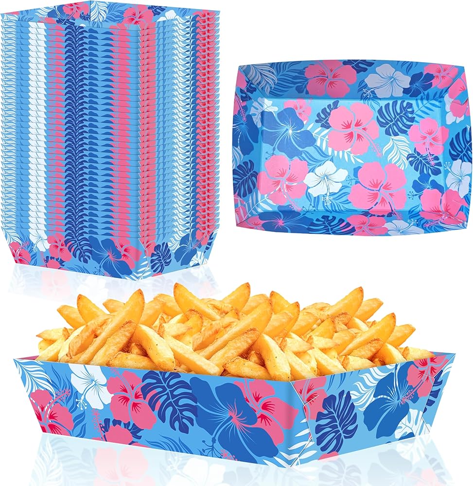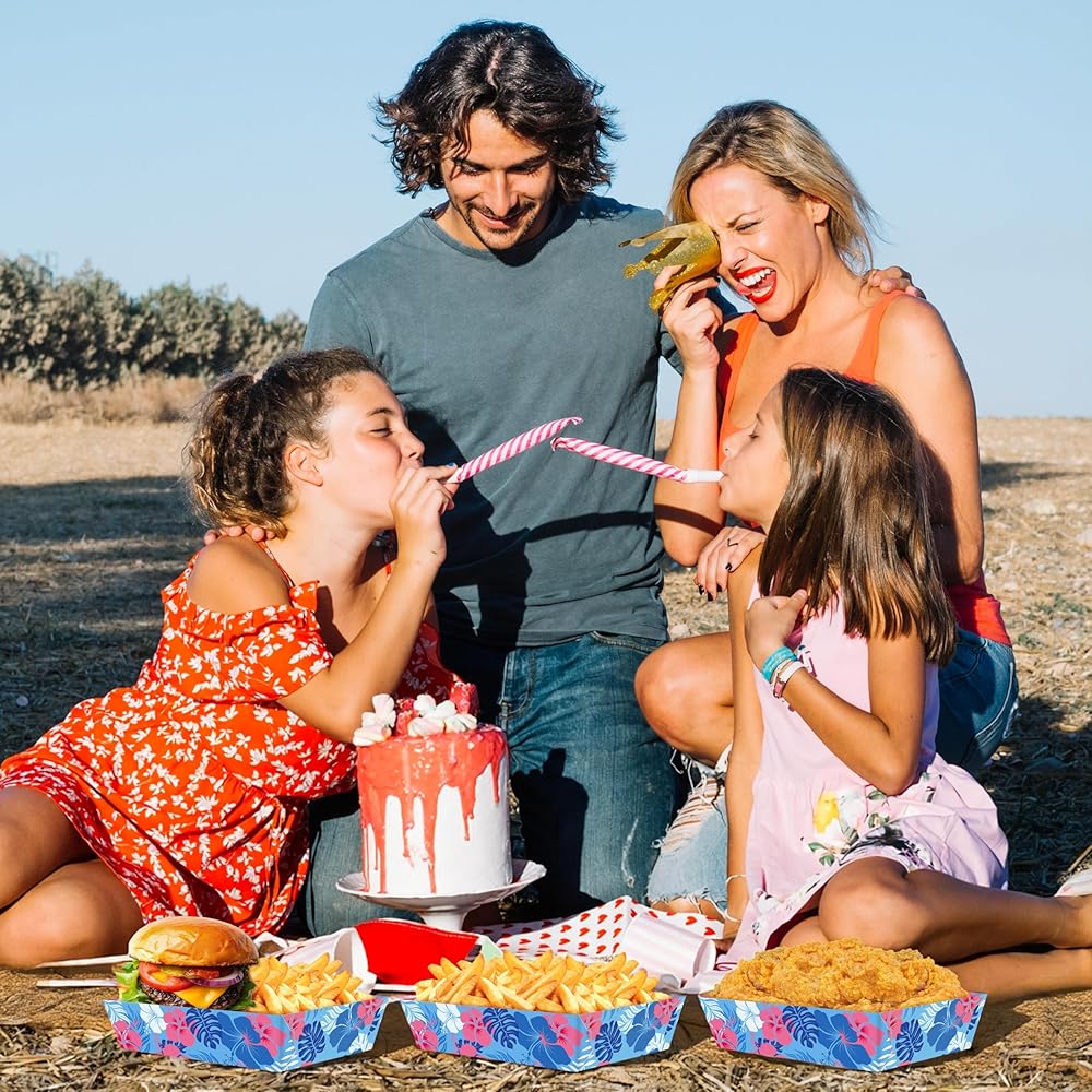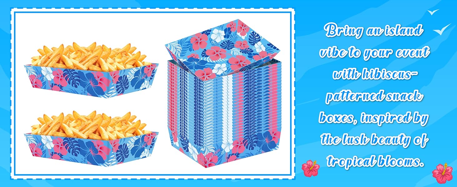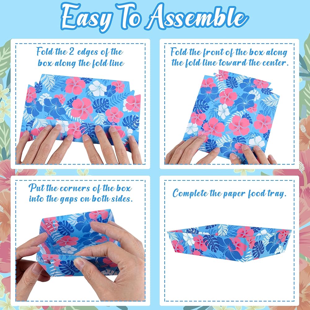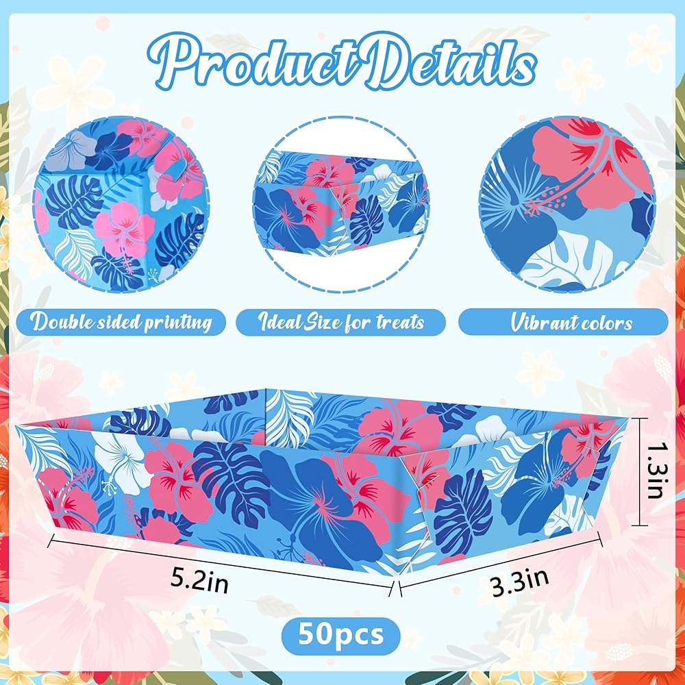تشمل العبوة: سوف تحصل على 50 قطعة من صواني الطعام الورقية للحفلات الكرتونية الزرقاء. مصممة لحفلات الصيف مع عناصر الكركديه المطبوعة على السطح، وهي مطبوعة على كلا الجانبين بألوان نابضة بالحياة، تكمل موضوع هاواي؛ يرجى تجميع المنتج قبل الاستخدام