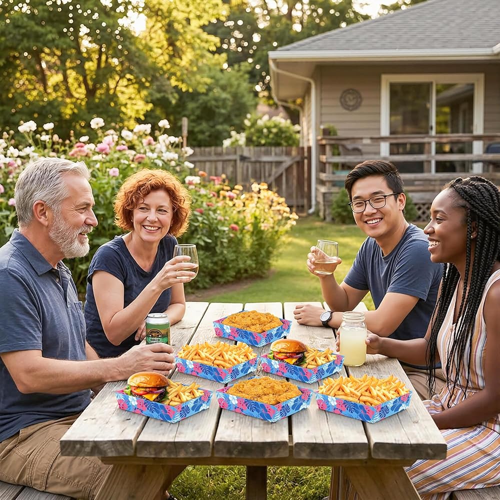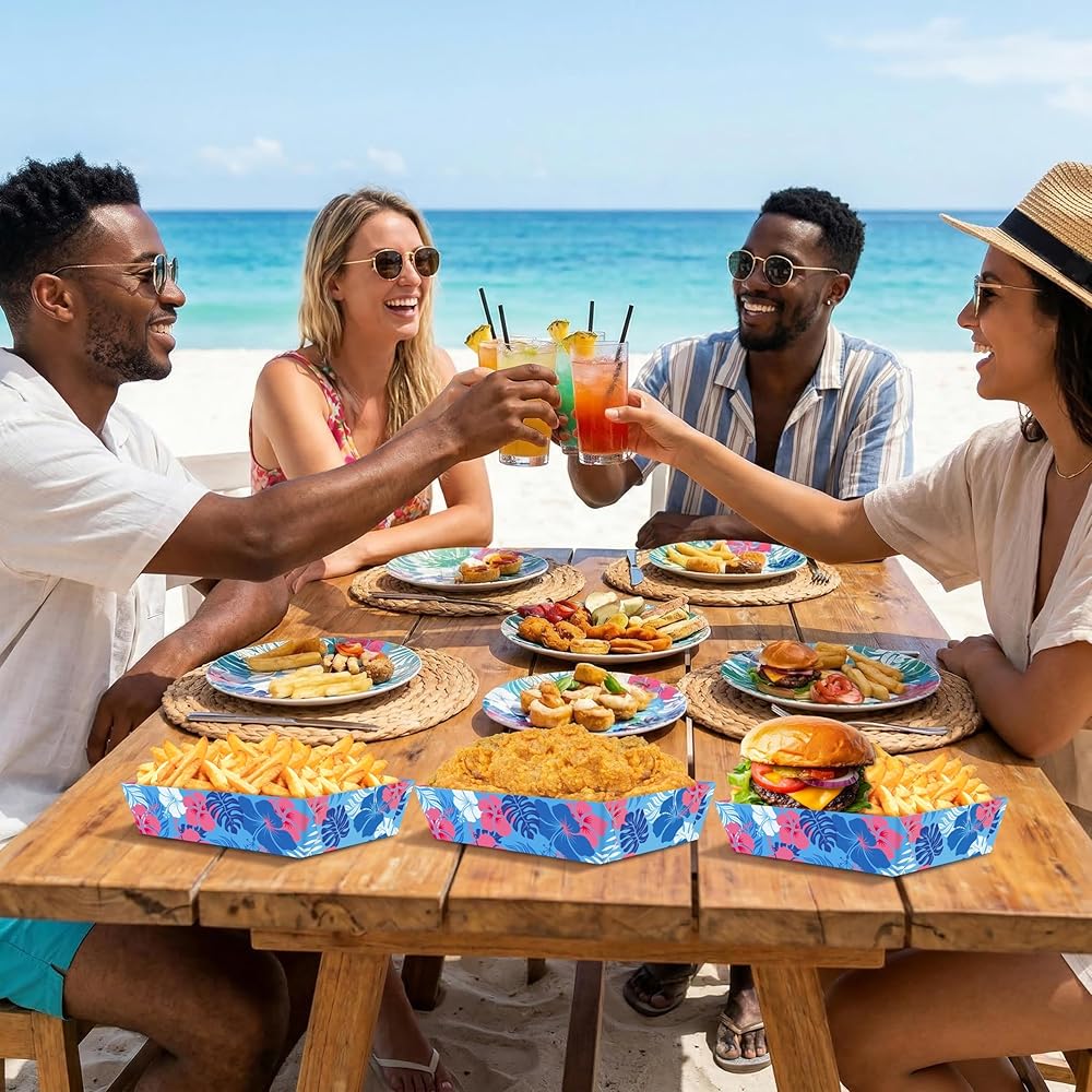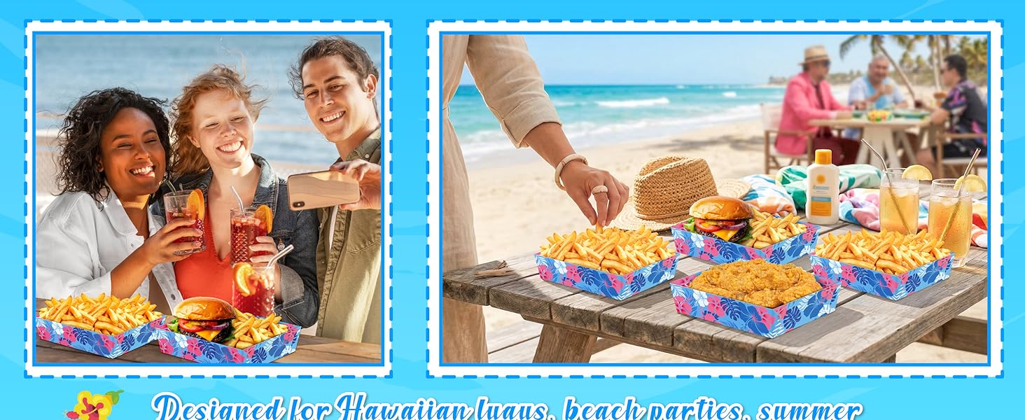 مناسبات واسعة قابلة للتطبيق: صواني الطعام الخاصة بحفلات هاوايان لوا مناسبة لحفلات هاواي، والتجمعات ذات طابع الشاطئ، وحفلات الشواء الصيفية، وحفلات هاواي، والمناسبات ذات الطابع الاستوائي، ولم شمل الأسرة، وغيرها من الاحتفالات الصيفية الممتعة.