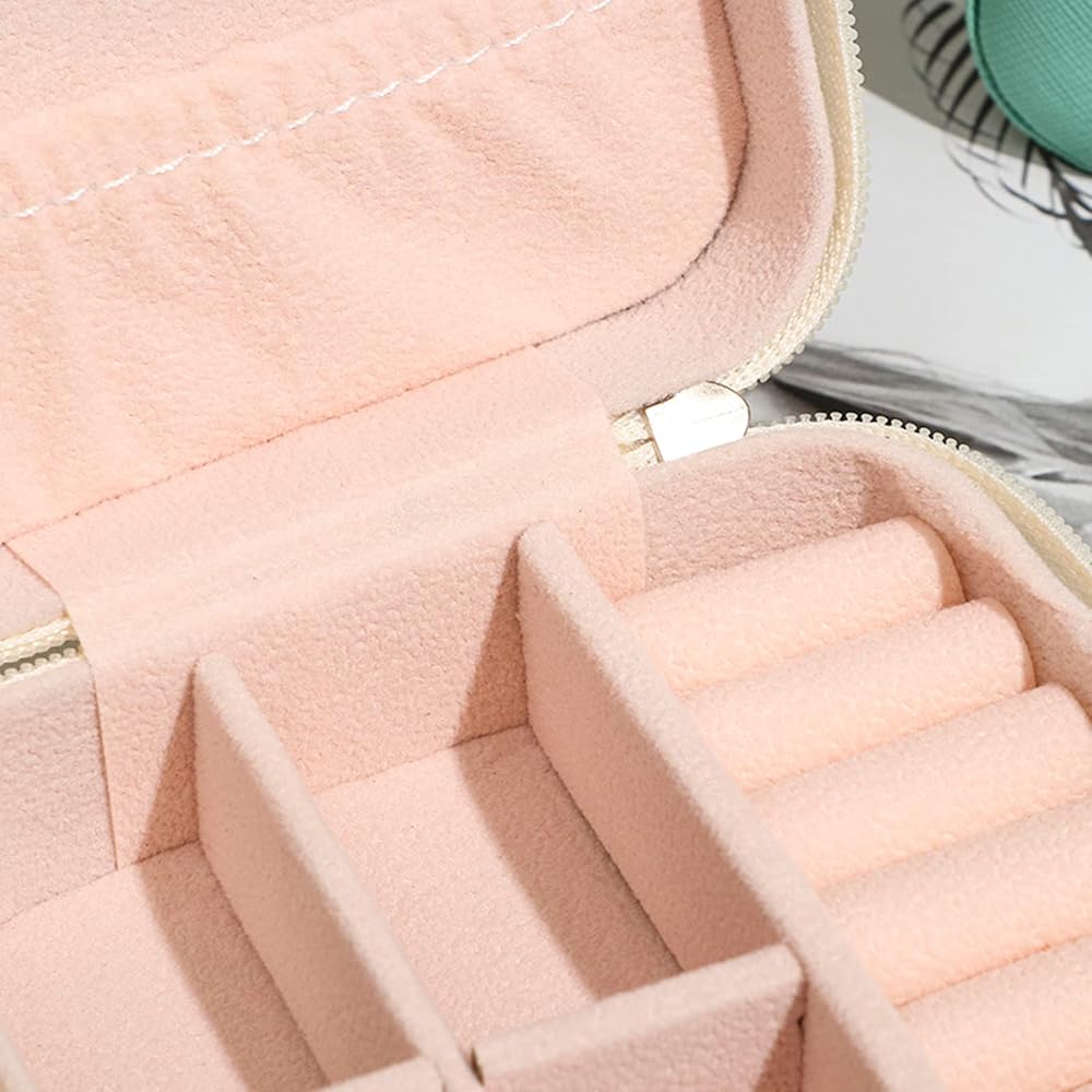 جودة عالية: صندوق مجوهرات صغير لطيف مصنوع من جلد البولي يوريثان وبطانة من الفلانيل من الداخل مع سحاب مغلق.
