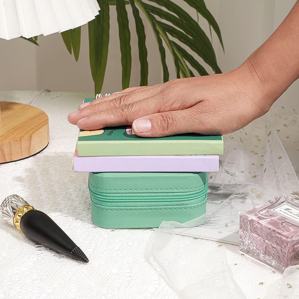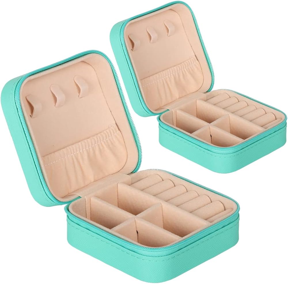 GOTDYA 2 علبة مجوهرات للسفر، صندوق مجوهرات صغير من جلد البولي يوريثان لتنظيم وتخزين المجوهرات، فيروزي