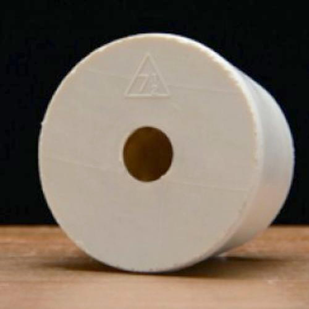 Pack of (2) #7 1/2 drilled rubber stoppers. Top diameter is 1 1/2" and bottom diameter is 1 1/4"