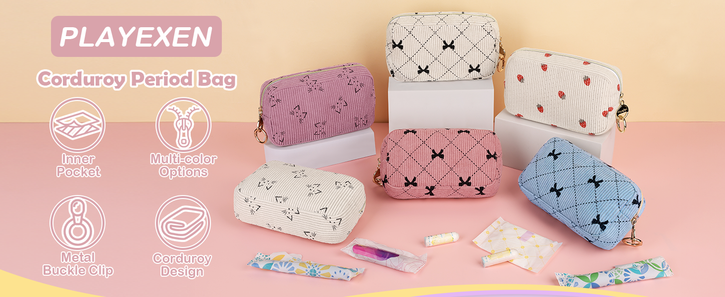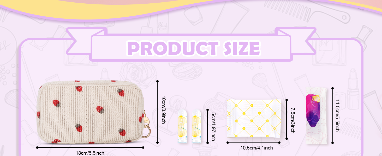 【حجم مناسب 】 القياس: 6.7*1.6*3.5 بوصة. يمكن لحقيبة المناديل الصحية من سروال قصير أن تحمل ما يصل إلى 8 فوط صحية بالحجم الطبيعي و10 سدادات قطنية في وقت واحد. سواء كنت في المكتب أو في الهواء الطلق أو أثناء السفر، يمكن أن تتناسب حقيبة الفوط الصحية بسهولة مع حقيبتك