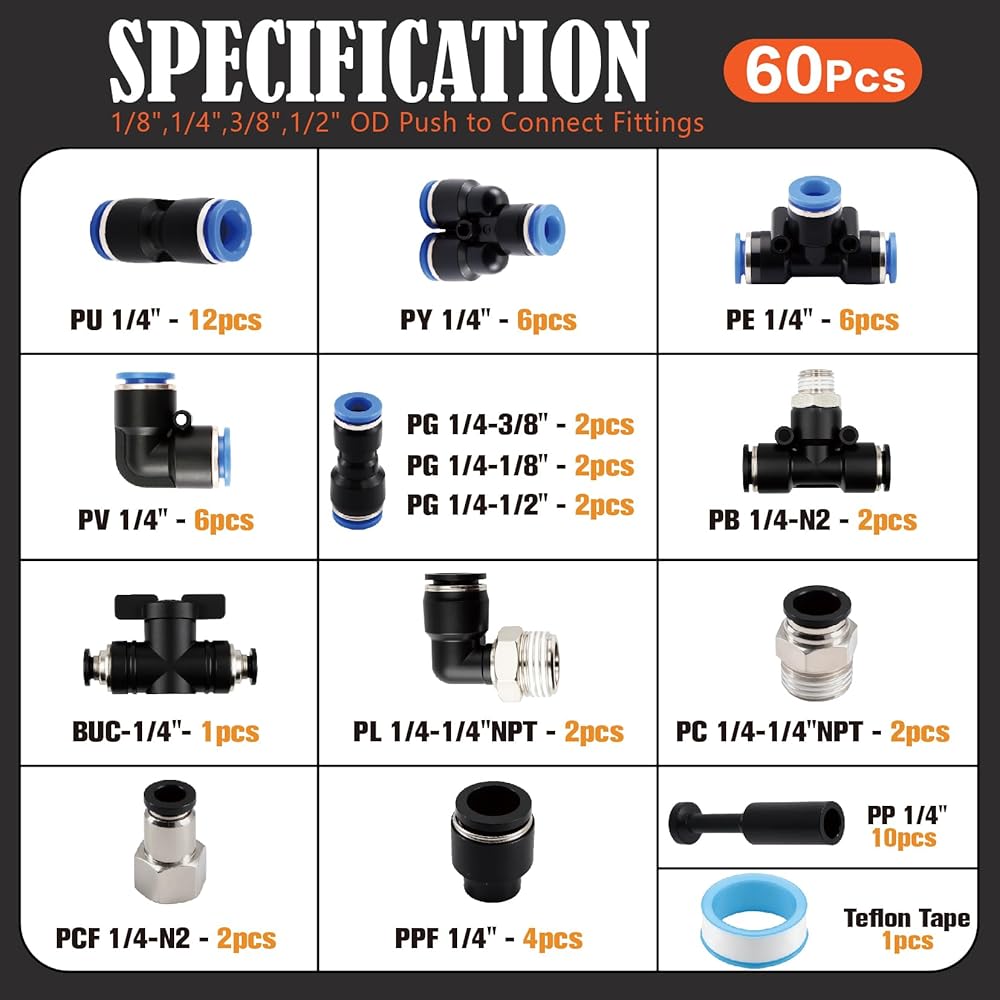 A total of 60 Pcs Fittings,