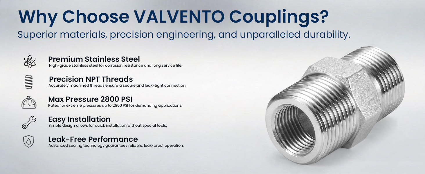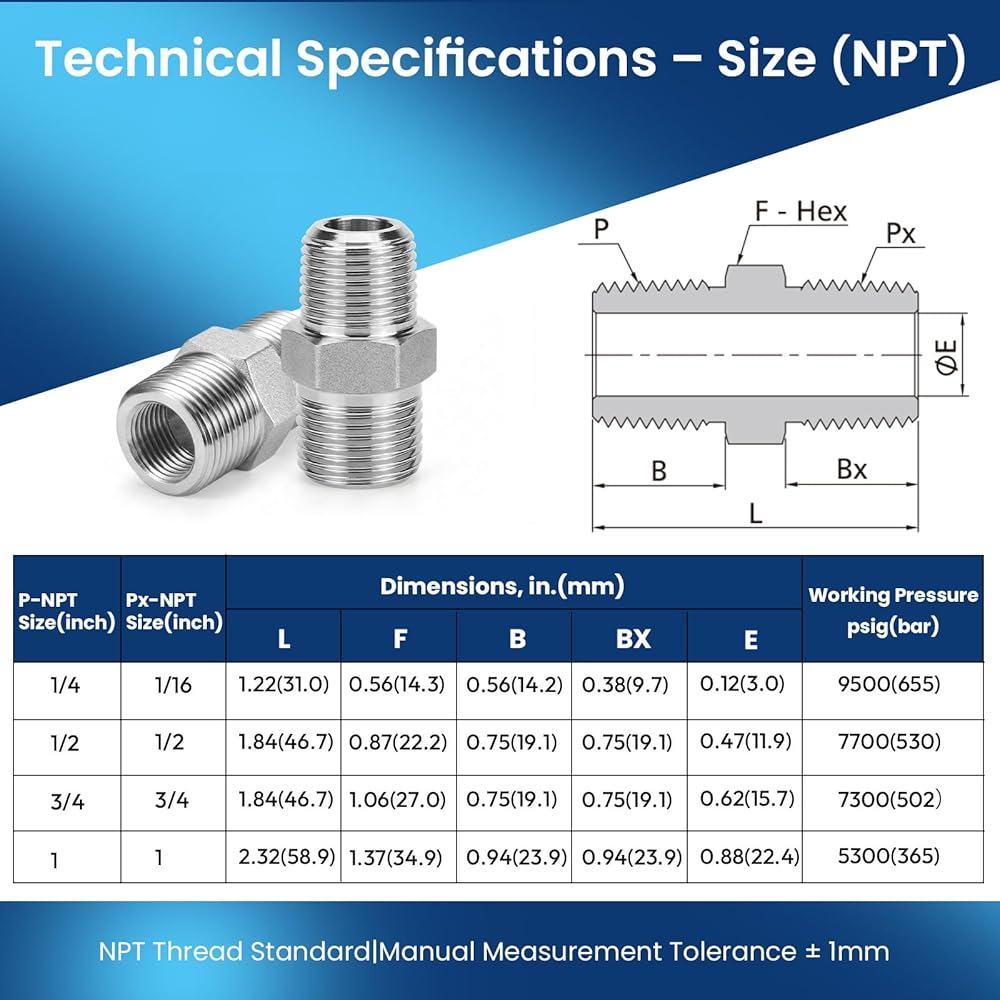 خيوط NPT مثالية - توفر خيوط NPT الذكور أختامًا أكثر إحكامًا من الخيوط القياسية. رأس سداسي يسمح بسهولة تركيب مفتاح الربط.