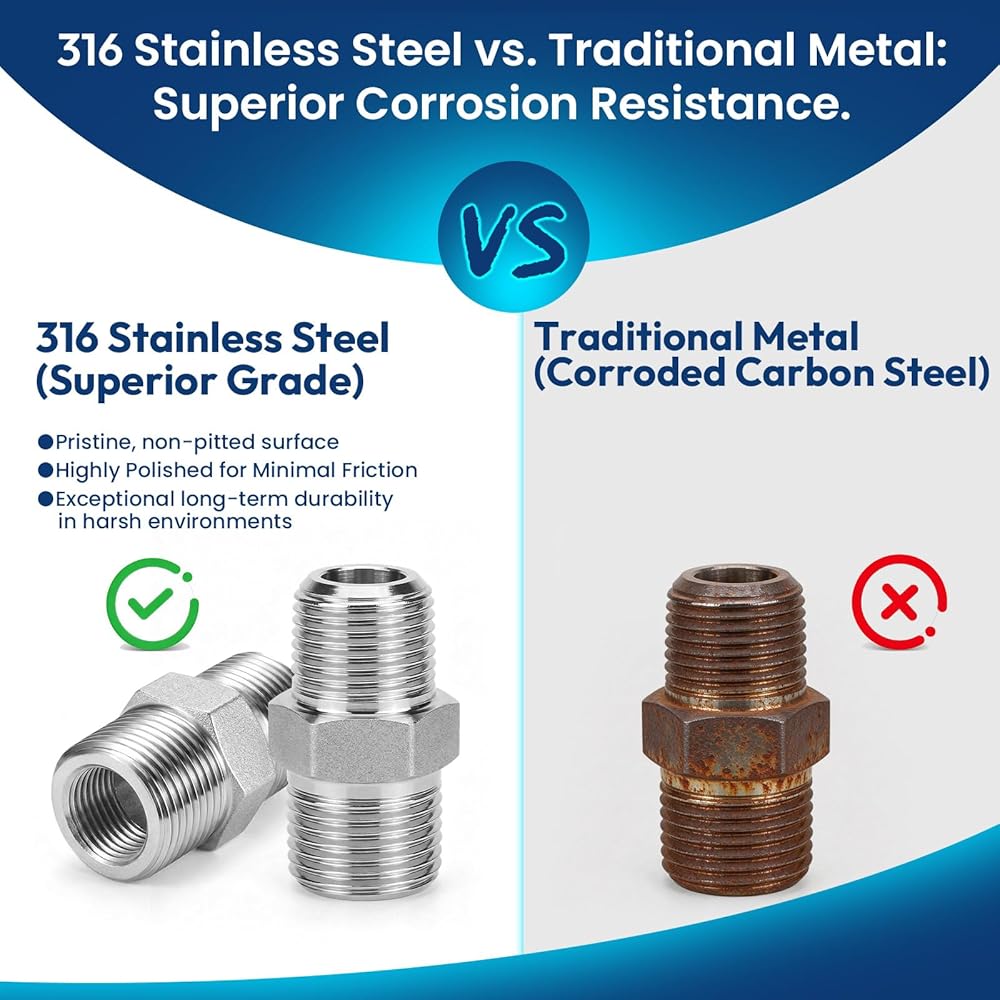 مادة فاخرة: 316 من الفولاذ المقاوم للصدأ - مقاومة استثنائية للتآكل، مثالية للاستخدامات البحرية والمياه المالحة والكيميائية والخارجية.