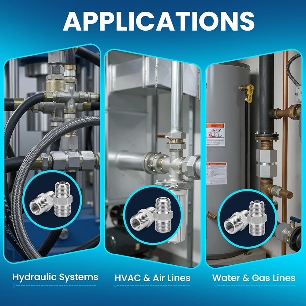 تطبيقات متعددة - مثالية لضواغط الهواء، والأنظمة الهيدروليكية، وخطوط الوقود والغاز، وخطوط أنابيب المياه، والمياه المالحة والبيئات الكيميائية، والسباكة الصناعية.
