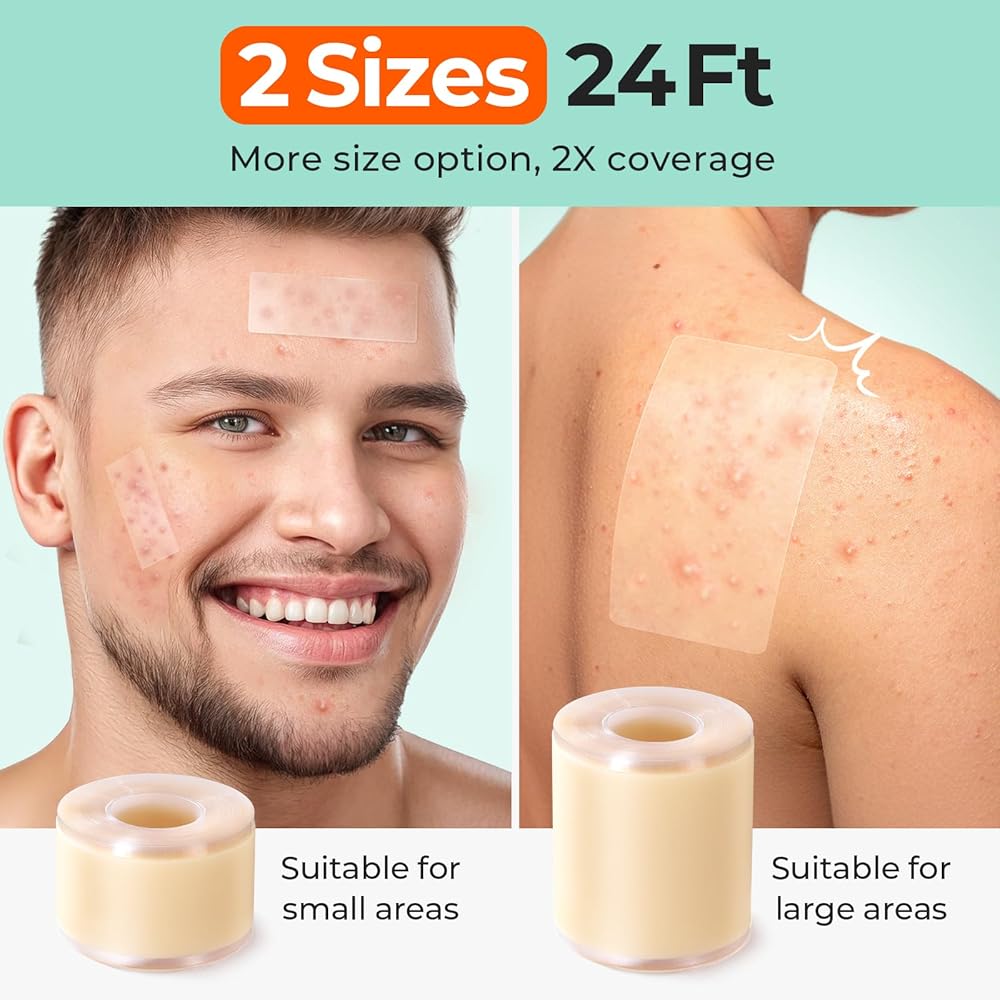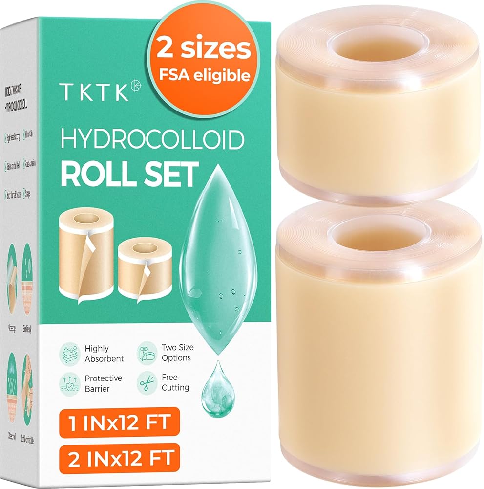 لفة غرواني مائي بحجمين من TKTK، (2 بوصة * 12 قدم + 1 بوصة * 12 قدم) ضمادات غرواني مائي، رقعة غرواني مائي لحب الشباب والجروح والحروق والعناية بالبثور، ورقع البثور مع دعامة سهلة التقشير، مقاومة للماء وفائقة الامتصاص