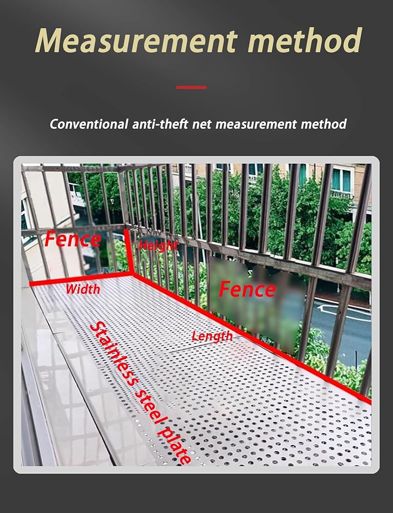 Introducing our 304 Stainless Steel Perforated Sheet, an ideal solution for various protection and decoration needs. Crafted from high-quality 304 stainless steel, this durable and corrosion-resistant material ensures longevity, making it perfect for outdoor and indoor applications. With a sleek silver finish, this punching plate adds a modern touch to any space while serving multiple functions. **Key Features:**- **Versatile Application:** Utilize this perforated sheet as an anti-theft window pad, balcony guard, or garden fence protection. It effectively creates a secure environment while enhancing the aesthetic appeal of your home or garden.- **Space-Saving Design:** Perfect for displaying potted plants, shoes, or cat cages, this sheet helps you maximize your space while providing a stylish backdrop for your belongings.- **Protective Film:** Each sheet comes with a protective film that can be easily removed, ensuring a clean and attractive surface upon installation.**Specifications:**- **Material:** 304 stainless steel- **Color:** Silver- **Dimensions:** Available in customizable widths and lengths- **Thickness:** 0.8 mm- **Aperture:** 8 mm with 10 mm spacing**Ideal Usage Scenarios:**This perforated sheet is perfect for balconies, railings, staircases, gardens, windows, courtyards, yards, and terraces. It seamlessly blends functionality with style, making it an excellent addition to your home improvement projects.**Package Includes:**1 x Perforated Stainless Steel Plate**Note:** Please allow for a slight measurement error of 1-2 cm due to manual measurement. The balcony punching net mat is shipped in rolls; simply flatten it with a heavy object upon receipt for optimal use. Elevate your home's safety and style with our 304 Stainless Steel Perforated Sheet !