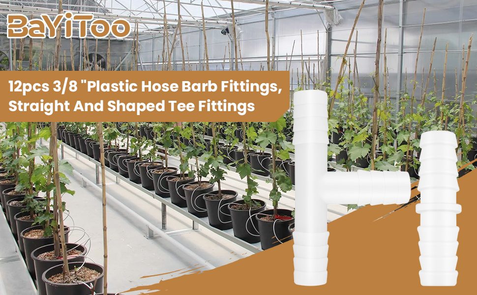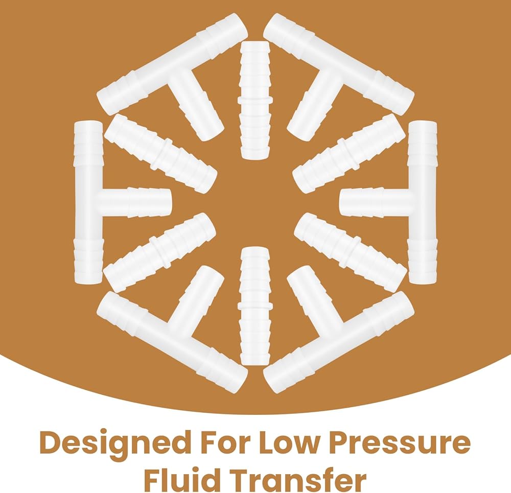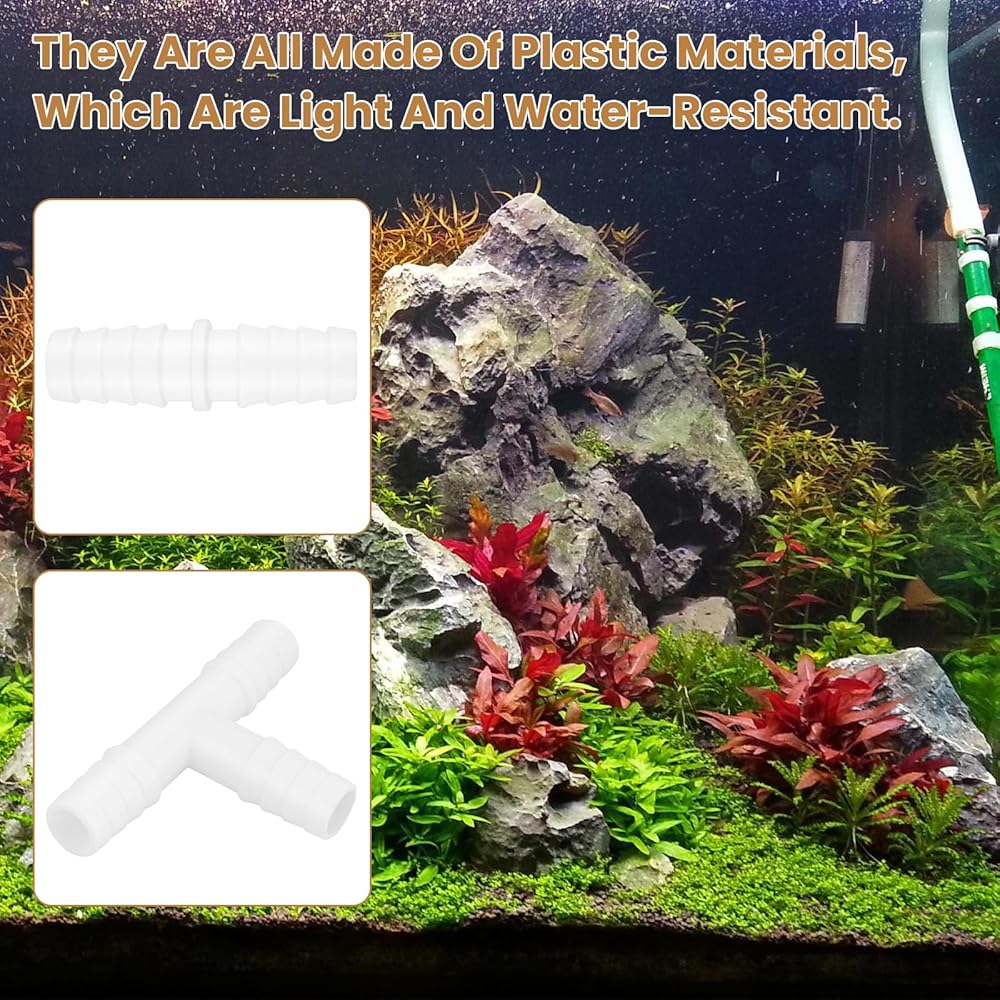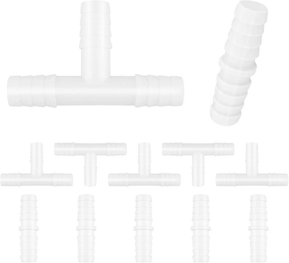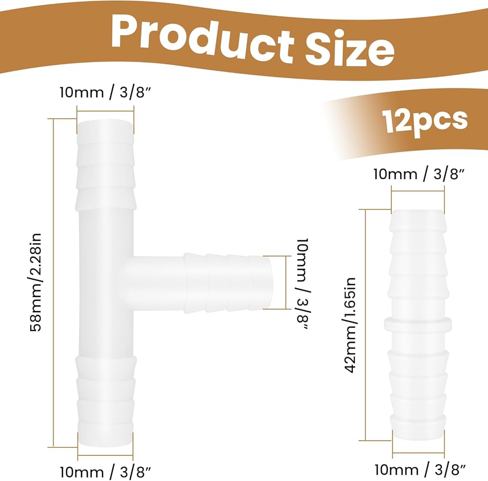 12 قطعة من تركيبات خرطوم بلاستيكية مقاس 3/8 بوصة، موصلات مستقيمة وعلى شكل حرف T ثلاثية الاتجاهات، محولات وصلة ربط شائكة لأنابيب الهواء/المياه، مثالية لحوض السمك والقوارب والأعمال اليدوية