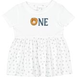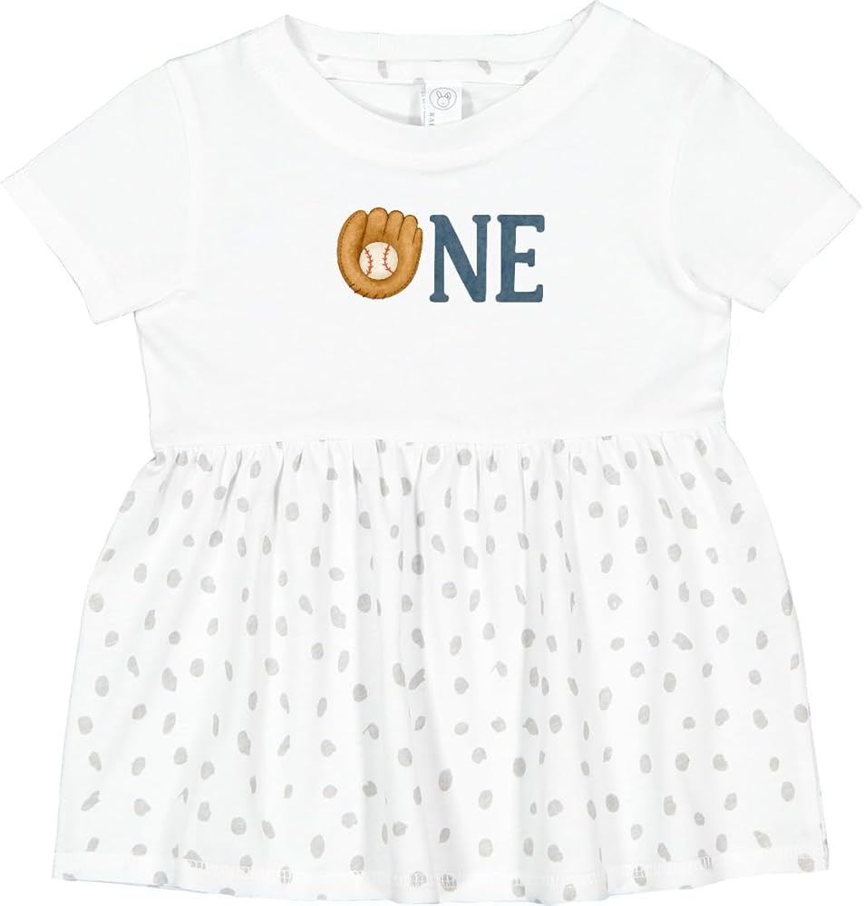 Celebrate the big first birthday with this baseball-themed Infant Dress. Featuring a playful design with a glove and baseball forming the word "ONE," this is perfect for little sports fans.