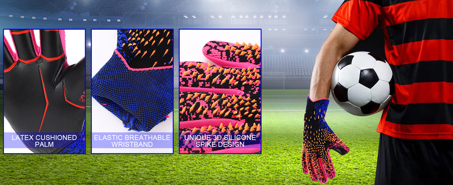 Professional-grade Grip and Control: The palm of Keenso goalkeeper gloves are made of the embossed thick latex with flex zones; this design follows the natural lines of your palm, accommodating any form of grip and allowing for excellent ball control in any situation