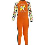 The suit has long legs and long sleeves. This UV-protective swimsuit with long sleeves for maximum coverage lets kids play outside without feeling the burn.