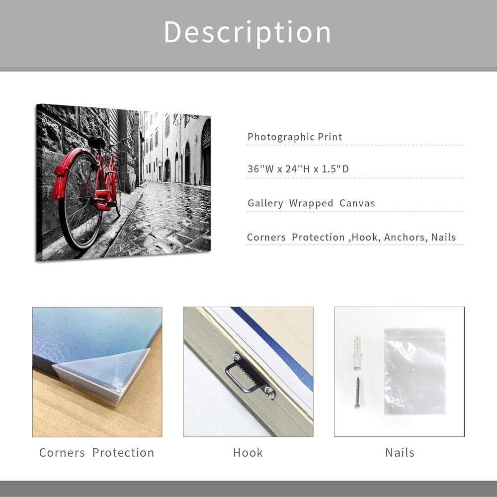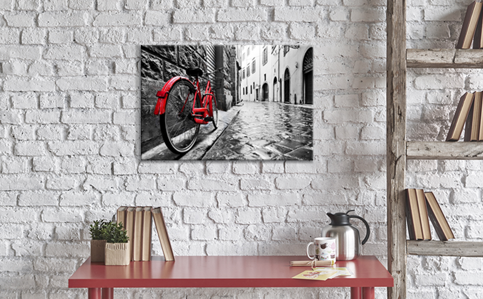 صور العمل الفني للدراجة من ARTISTIC PATH Cityscape Arts: طباعة فنية جرافيك لدراجة حمراء على القماش (36 بوصة عرض × 24 بوصة ارتفاع، متعددة الأحجام)