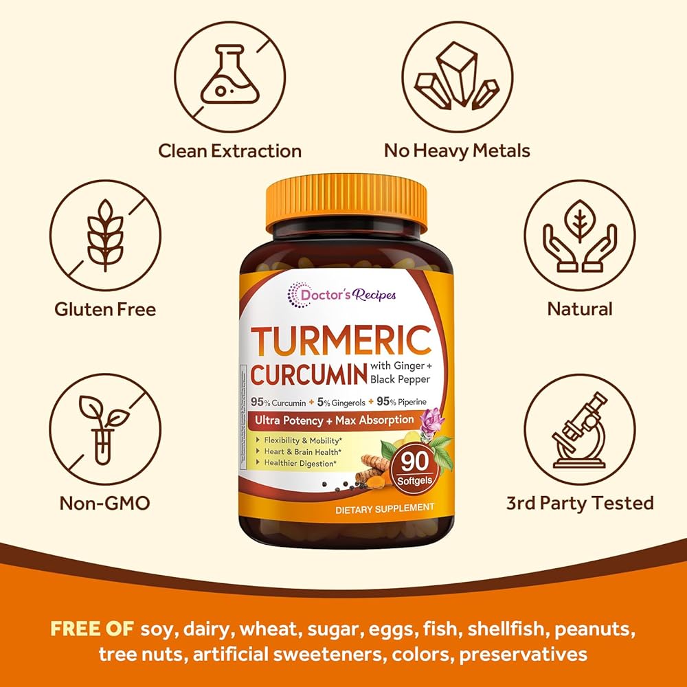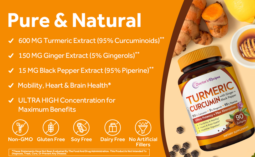 صُنع بفخر في الولايات المتحدة الأمريكية: تركيبتنا القوية المتقدمة محملة بمكونات عالية الجودة ومن مصادر طبيعية في منشأة معتمدة من GMP في الولايات المتحدة الأمريكية. وصفات الطبيب كبسولة هلامية من مستخلص الكركم للرجال والنساء نقية 100% وطبيعية ومستدامة وغير معدلة وراثيًا ولا تحتوي على الصويا والغلوتين ومنتجات الألبان.