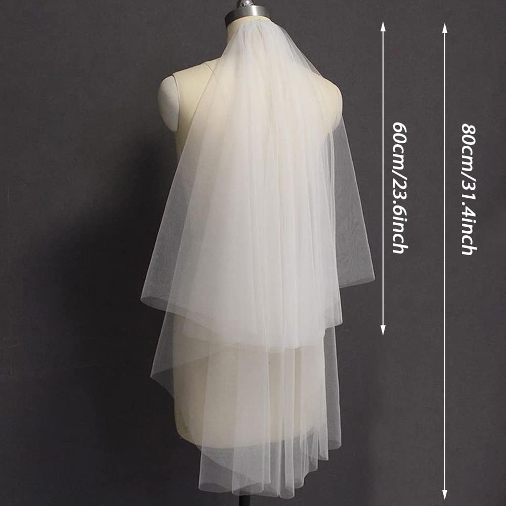 مصنوع من التل الوهمي عالي الجودة، وشاح الزفاف القصير ناعم الملمس للغاية وجيد التهوية وقابل للتمدد.