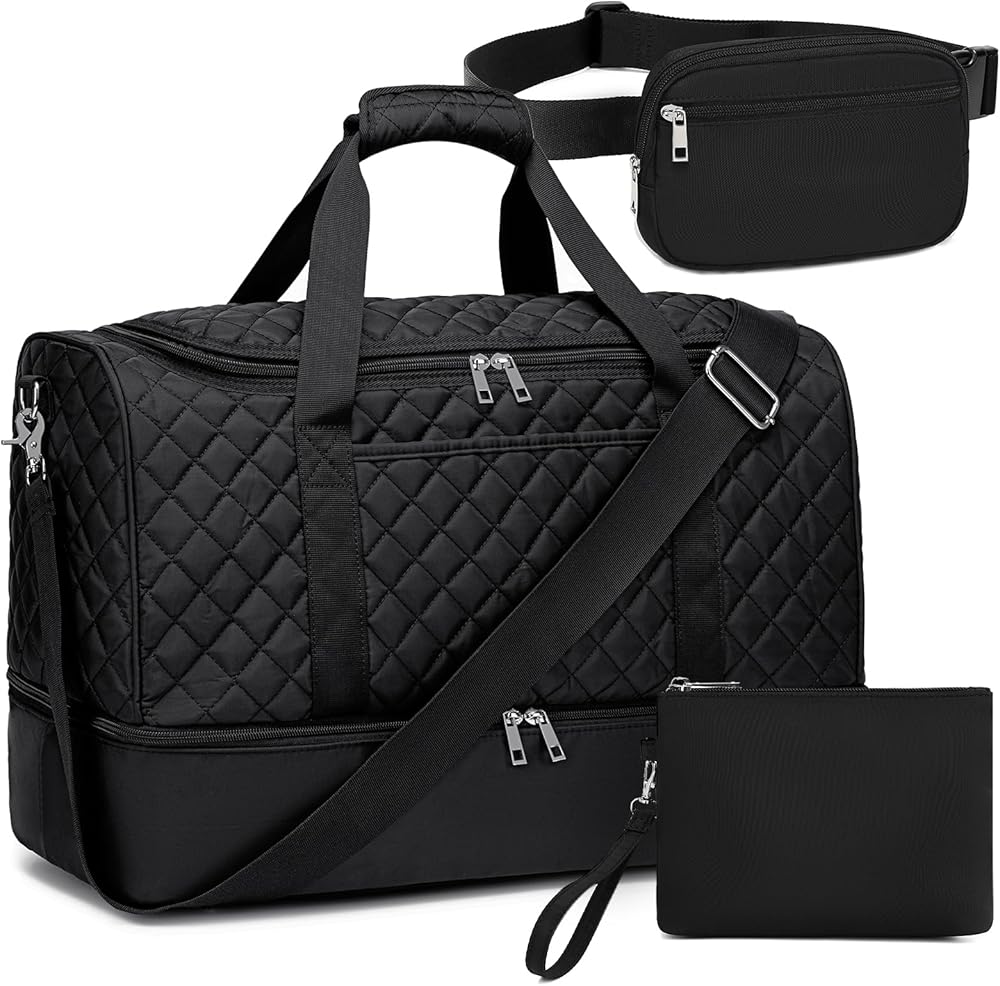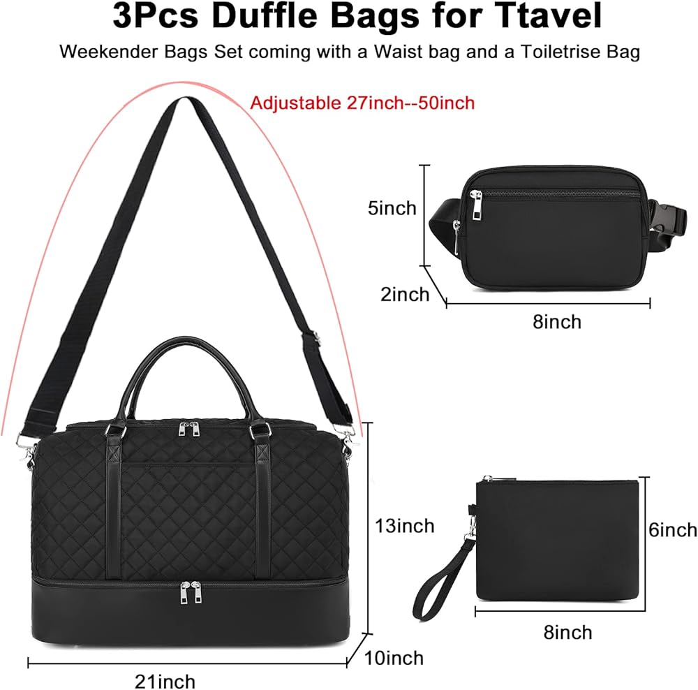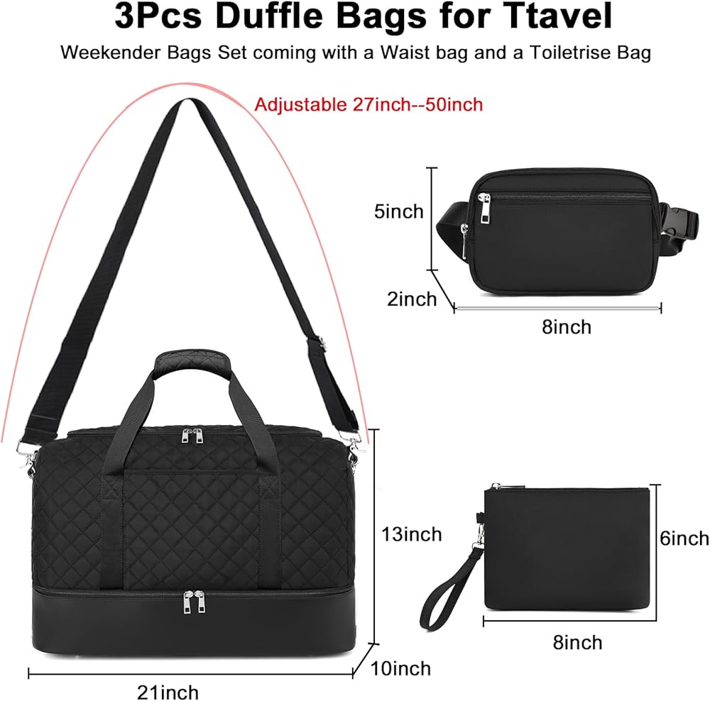 حقيبة دفل مع حجرة منفصلة للأحذية: حقيبة عطلة نهاية الأسبوع سعة 42 لترًا للنساء تأتي مع حقيبة خصر وحقيبة مكياج. حقيبة حمل كبيرة الحجم معتمدة على متن الطائرة: 21 × 10 × 13 بوصة، حجم حقيبة الحزام الصغيرة: 8 × 2 × 5 بوصة؛ مقاس حقيبة المكياج: 8 × 6 بوصة. تعتبر مجموعة حقائب عطلة نهاية الأسبوع باللون البيج خيارًا رائعًا لسفرك.