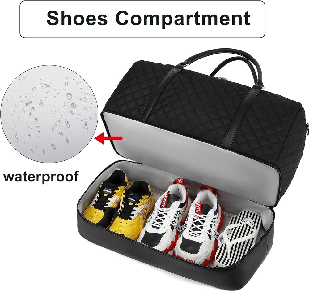 حقيبة سفر ذات سعة كبيرة وجيوب متعددة لعطلة نهاية الأسبوع: حقيبة مثالية لعطلة نهاية الأسبوع بسعة 42 لترًا مع مساحة كبيرة، حجم جيد للحصول على كل ما تحتاجه لرحلتين أو ثلاث ليالٍ قصيرة. جيب منفصل للأحذية بتصميم مقاوم للماء يناسب زوجين أو ثلاثة أزواج من الأحذية ويحافظ على ملابسك خالية من الحطام. جيبان خارجيان إضافيان لوضع هاتفك أو محفظتك أو جواز سفرك فيه، مما يسهل الوصول إليه. إنها مناسبة للحمل في رحلات الطيران، ومثالية لصالة الألعاب الرياضية، أو السفر أو التعبئة من أجل النوم.