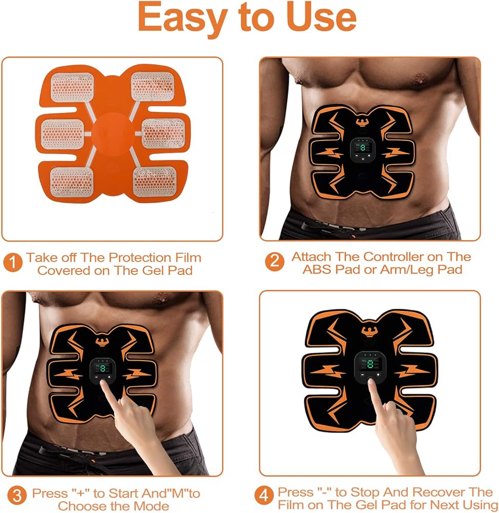 كيفية الاستخدام؟ - لبدء الاستخدام، ما عليك سوى وضع وسادات الجل على عضلات البطن، ثم انتقل إلى مستوى الشدة المرغوب فيه. يدوم محفز عضلات البطن النهائي هذا لمدة 20 دقيقة ويطفئ الطاقة تلقائيًا بعد عدم التشغيل. إنه مصمم بوظيفة الفحص الذاتي للطاقة. فقط عندما تلصق وسادات الجل على جسمك، يمكن أن تبدأ وحدة التحكم في العمل، يرجى قراءة التعليمات قبل الاستخدام، فهي مصممة لتناسب محيط بطنك لتحفيز جسمك.
