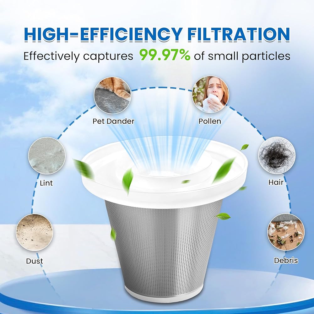 【Two Filter Types】: 3 standard pleated filters target fine dust, pollen and pet hair; 2 stainless-steel filters serve as durable pre-filters to extend overall service life.