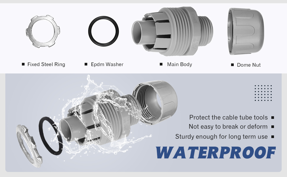 مريحة في الاستخدام: يتم توصيل موصلات القناة البلاستيكية هذه بسهولة بالصندوق ويتم تثبيتها بإحكام على القناة المرنة بدون أدوات أخرى؛ كل ما عليك هو دفع الأنبوب أو الأنبوب على الحلقة وشد صامولة إغلاق القبة، بسهولة وسرعة