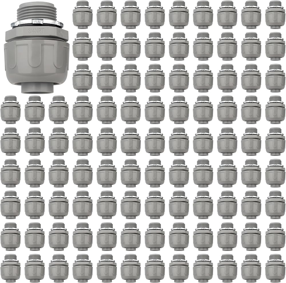 موصلات القناة، موصل سائل محكم 3/4 بوصة NPT غير معدني لتركيبات القنوات الكهربائية المرنة البلاستيكية، 180 درجة مستقيمة، مدرج في قائمة UL لأدوات الأنابيب المنزلية الخارجية، رمادي (150 حزمة) in Kuwait