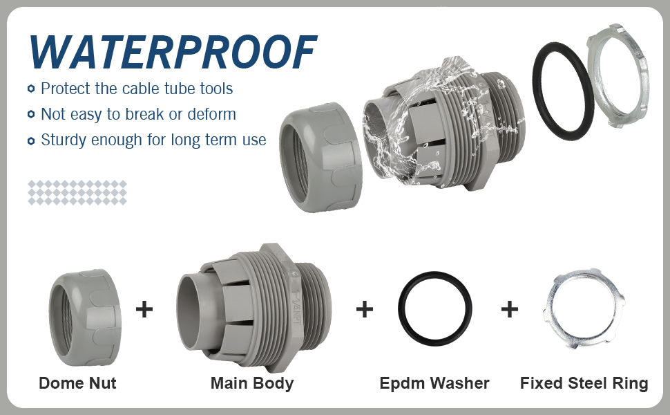 [تركيب سريع] بدون استخدام أي أدوات، يمكن ربط موصلات القناة غير المعدنية بسهولة بالقناة أو الأنبوب أو الصندوق الكهربائي. يتم توصيل حلقة الموصل بالقناة أو الأنبوب بمجرد دفعها عليها وشد الجوز المقبب.