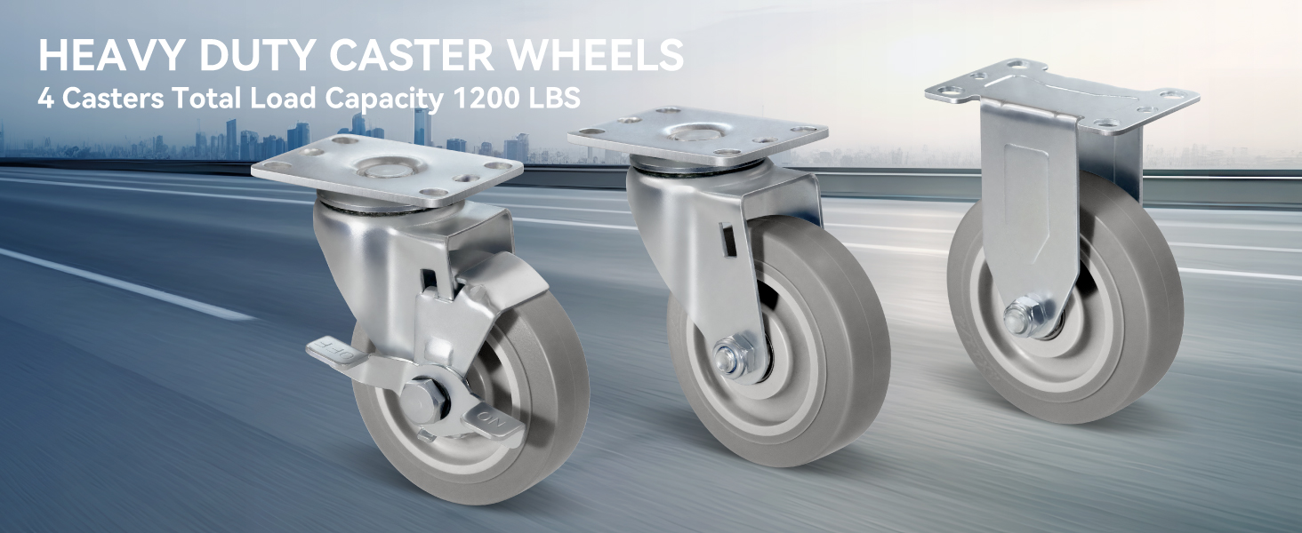 【عجلات شديدة التحمل تستخدم على نطاق واسع】حمولة 300 رطل لكل عجلة. يبلغ إجمالي الحمولة على العجلات الأربع 1200 رطل. يمكن استخدام العجلات شديدة التحمل في التطبيقات الصناعية والسكنية مثل العربات، والخزائن، وأرفف الكتب، وعربات التسوق، ومعدات عرض العرض، والعربات، ومحطات العمل المتنقلة، والأثاث، والمزيد.