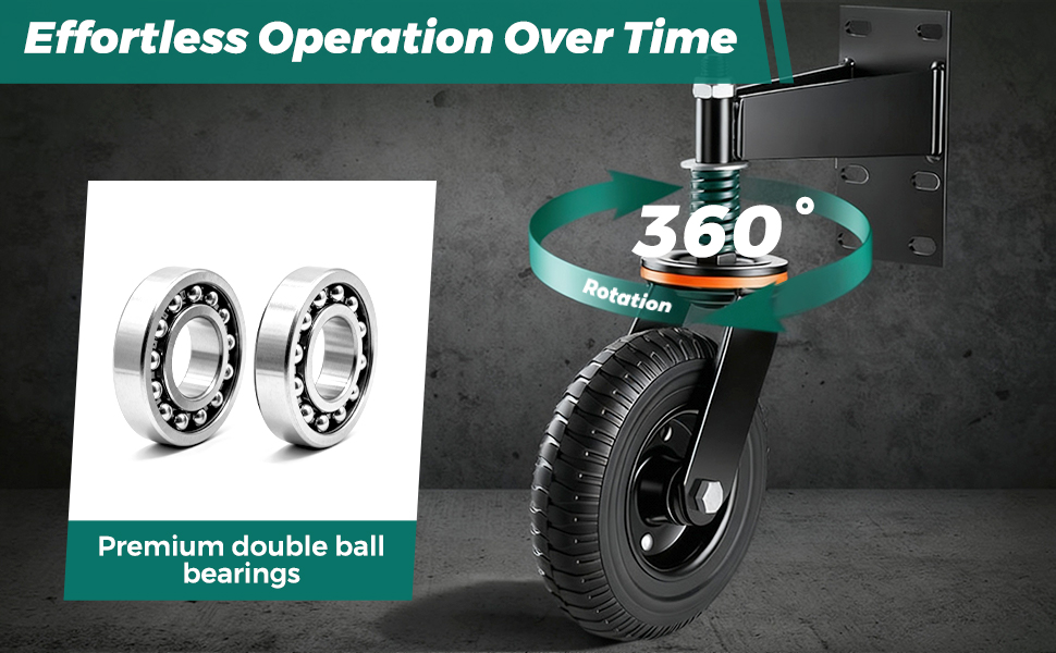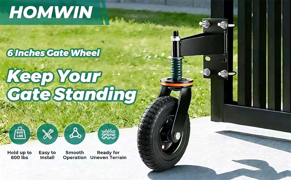 【عجلات بوابة شديدة التحمل】يضمن التصميم بقطر 15.24 سم، المعزز بقوس فولاذي 5.6 مم ومحامل كروية مزدوجة ممتازة، دورانًا سلسًا 360 درجة أثناء التعامل مع ما يصل إلى 500 رطل بسهولة.