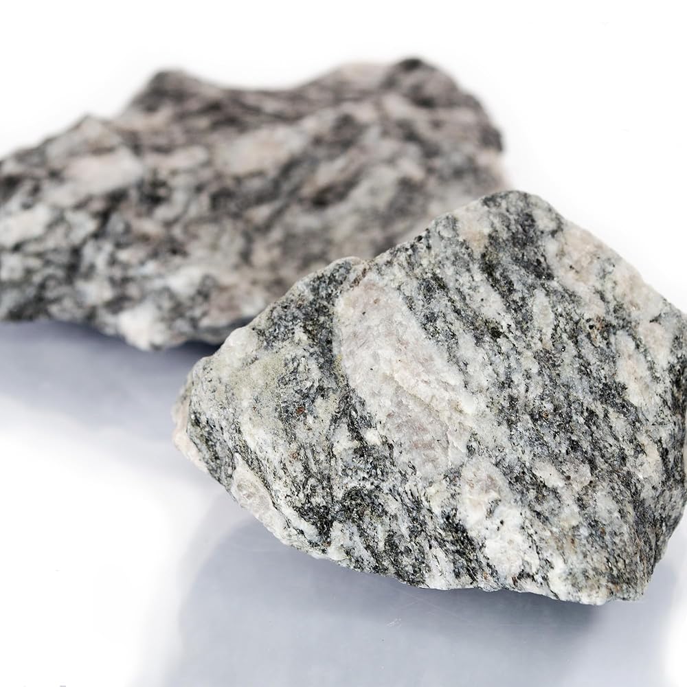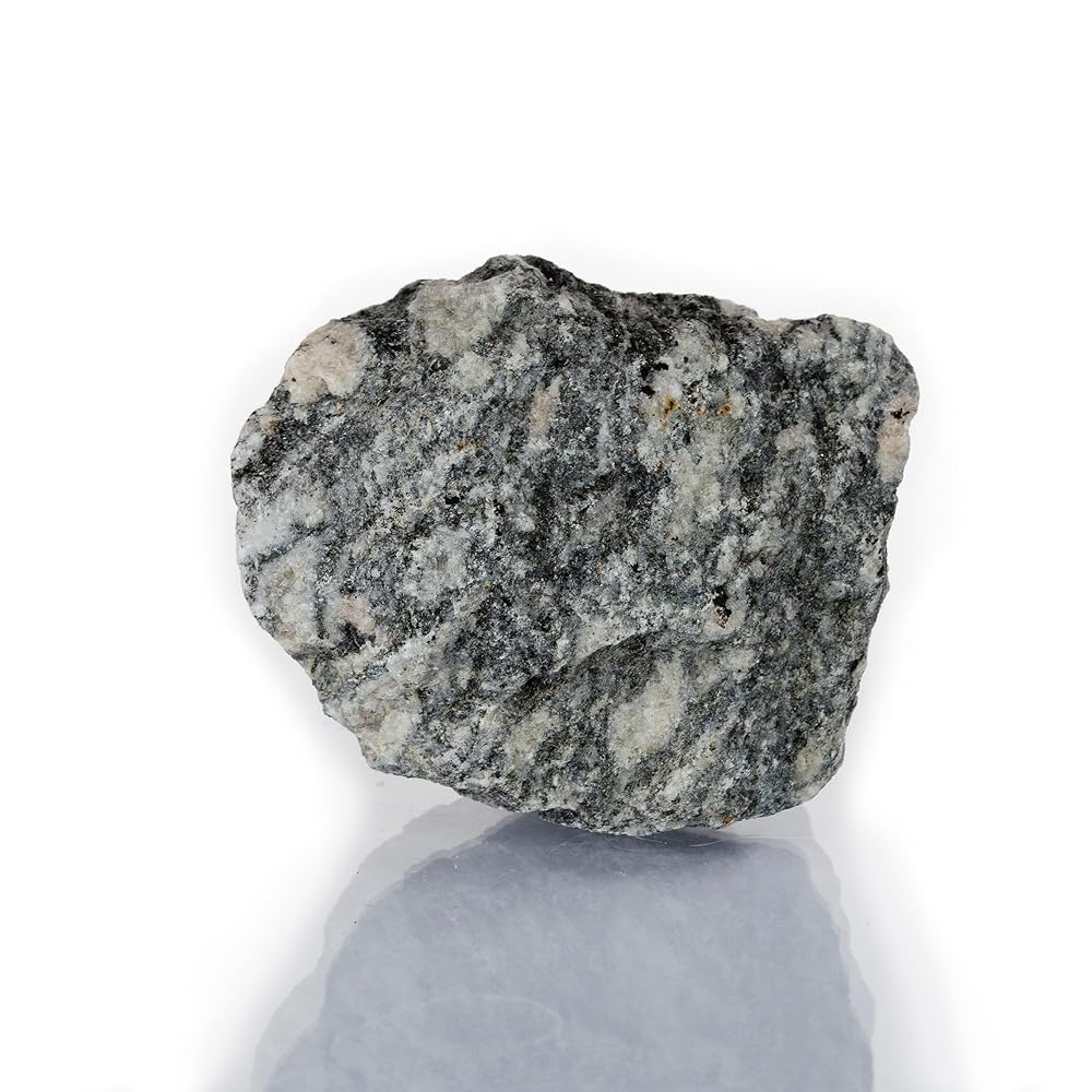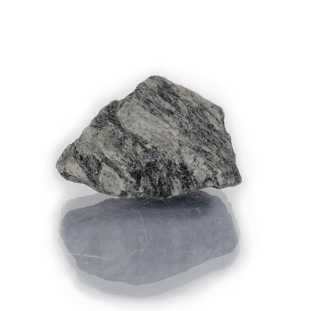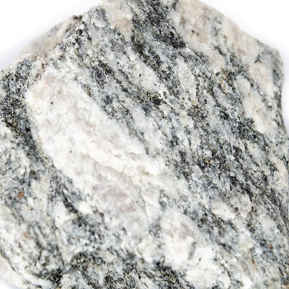 This raw Biotite Gneiss hand sample is a coarse-grained metamorphic rock with visible mineral banding and foliation, ideal for teaching geologic processes. Approximately 2.75", and commonly used in earth science classrooms, labs, and field kits, it demonstrates mineral segregation, recrystallization, and structural alignment. Suitable for rock cycle instruction, texture analysis, and comparative rock studies. Unpolished and representative of natural metamorphic formation.
