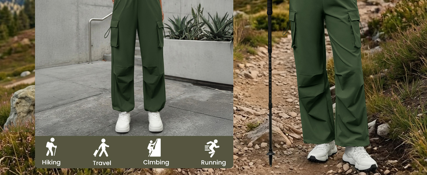 [أربعة جيوب]: تتضمن سراويل التنزه سيرًا على الأقدام النسائية أربعة جيوب، بما في ذلك جيبين كارجو؛ يمكن لسراويل المظلة للسيدات تخزين هاتفك ومفاتيحك وما إلى ذلك. تم تصميم سراويل البضائع للنساء للحفاظ على أغراضك آمنة ويمكن الوصول إليها