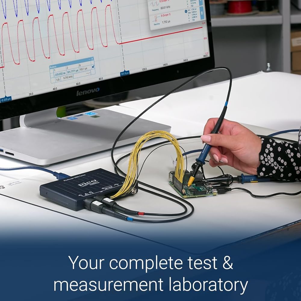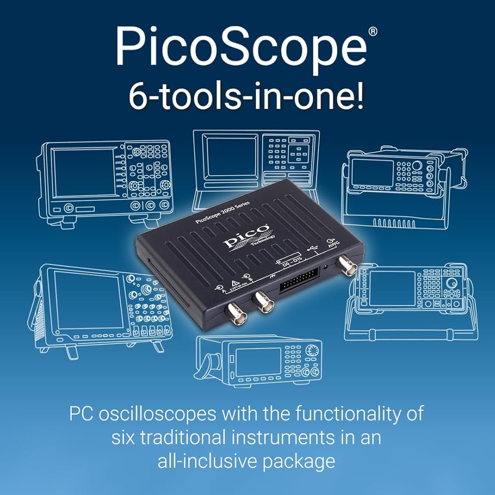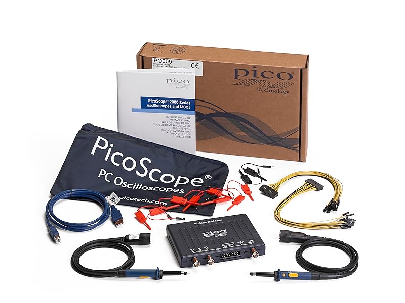 Pico Technology PicoScope 2205A راسم الذبذبات ذو الإشارة المختلطة بقناتين، عرض النطاق الترددي MSO 25 ميجاهرتز، معدل العينة 500 MS/s، جهاز كمبيوتر USB محمول مع مجسات، ملحقات، برنامج PS7