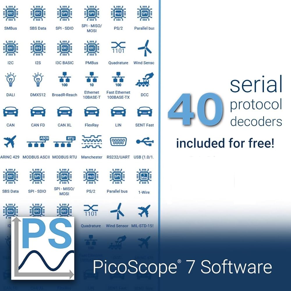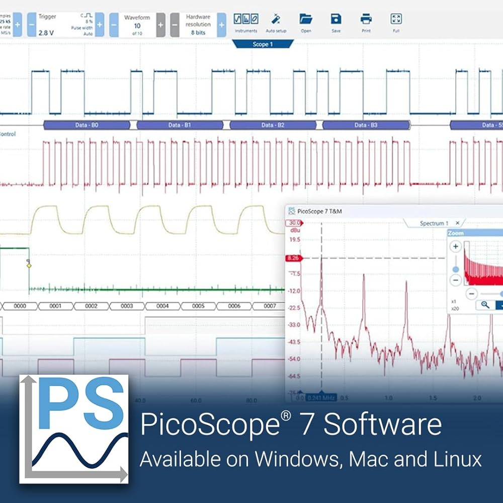 برنامج PS7 لأنظمة التشغيل Windows وLinux وMac. يحتوي PicoScope 7 على جميع أدوات التحليل التي تحتاجها للحصول على الإجابات بسرعة، سواء كان إجراء اختبار بسيط، أو تصحيح أخطاء تصميم معقد. تتم إضافة ميزات جديدة بشكل مستمر من خلال ترقيات البرامج المجانية، مما يعني أن PicoScope الخاص بك سيستمر في التحسن!