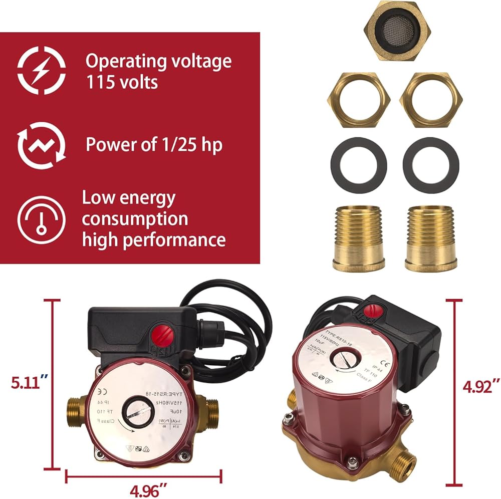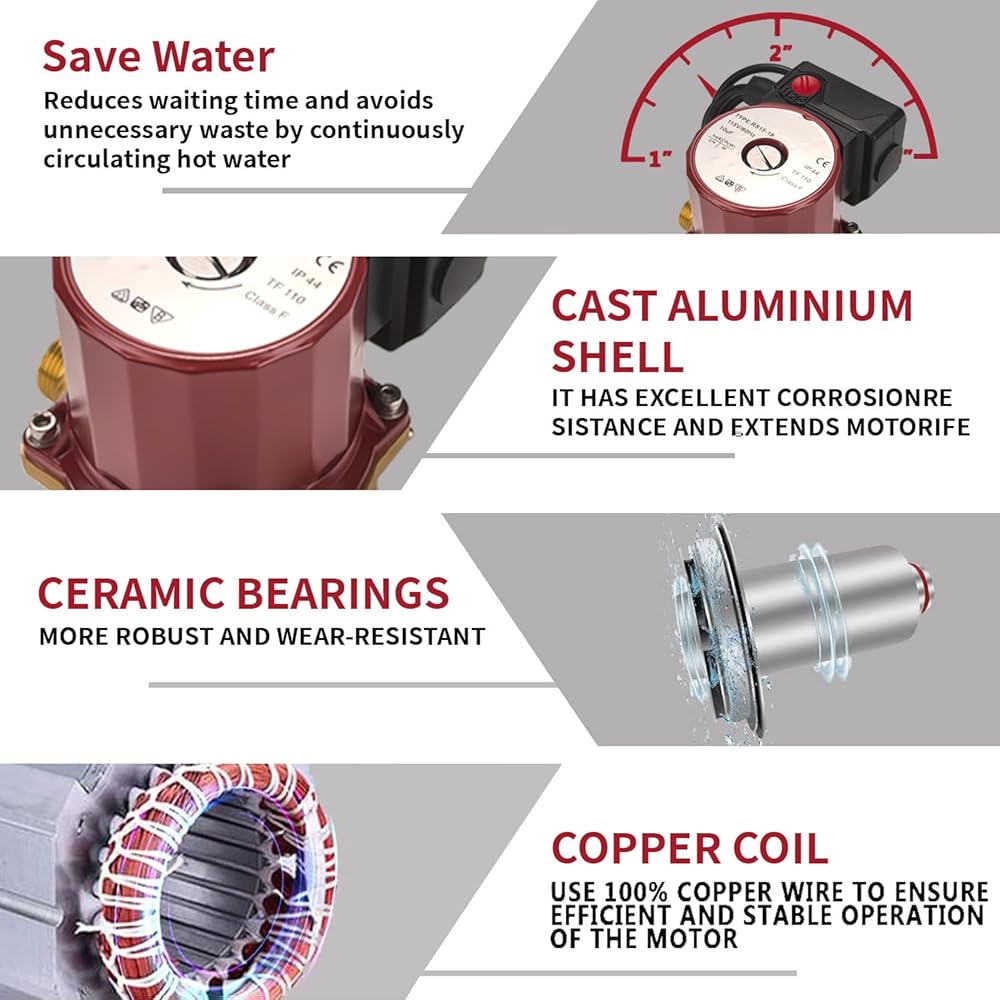 • Extreme Workmanship: Shenhifa circulator pump is crafted from bronze housing with a 1/2" sweat end, ensuring superior sealing and durability. The design and a built-in motor protectior minimizes wear and corrosion, enhancing the product's lifespan