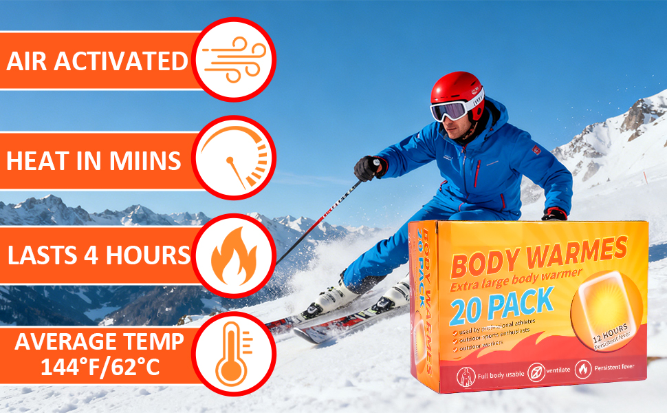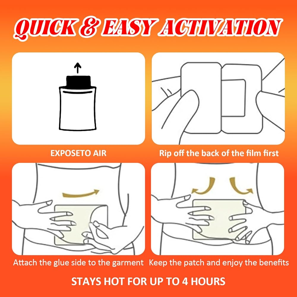 • دفء سريع ومستدام: تركيبة منشطة بالهواء تسخن بسرعة بمجرد فتحها، مما يوفر دفء لطيف لمدة تصل إلى 4 ساعات لدعم استرخاء العضلات.