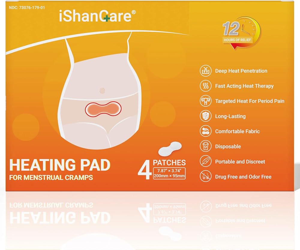 رقع حرارية من إيشانكير لتشنجات الدورة الشهرية، عدد 4 رقع تسخين لاصقة لتشنجات الدورة الشهرية وآلام الظهر، وسادات حرارية سرية ومحمولة للاستعمال مرة واحدة، حتى 12 ساعة