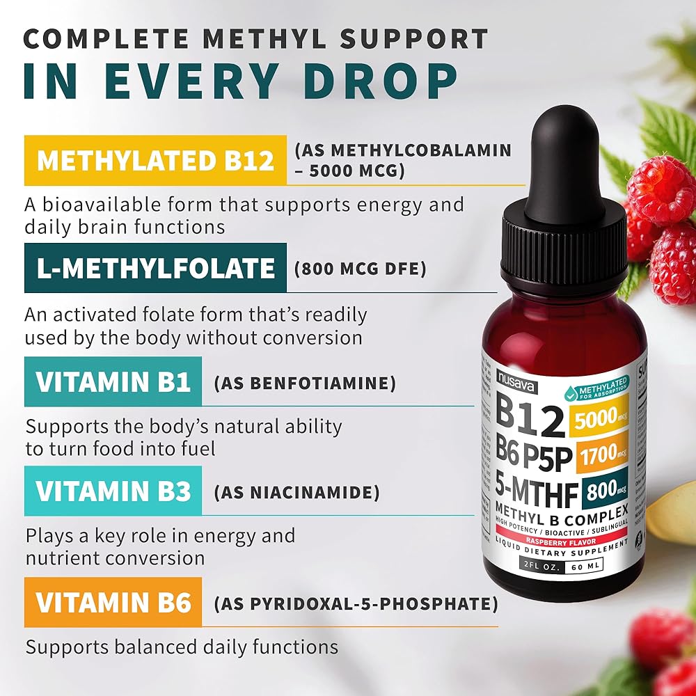 • اشعر بالاستعداد كل يوم: لقد قمنا بصناعة قطرات ميثيل سلفات المركب النقية بتركيبة كاملة الطيف بما في ذلك فيتامين ب 12 5000 ميكروجرام من أجل الوضوح والطاقة والثقة في طقوس يومية واحدة سهلة.