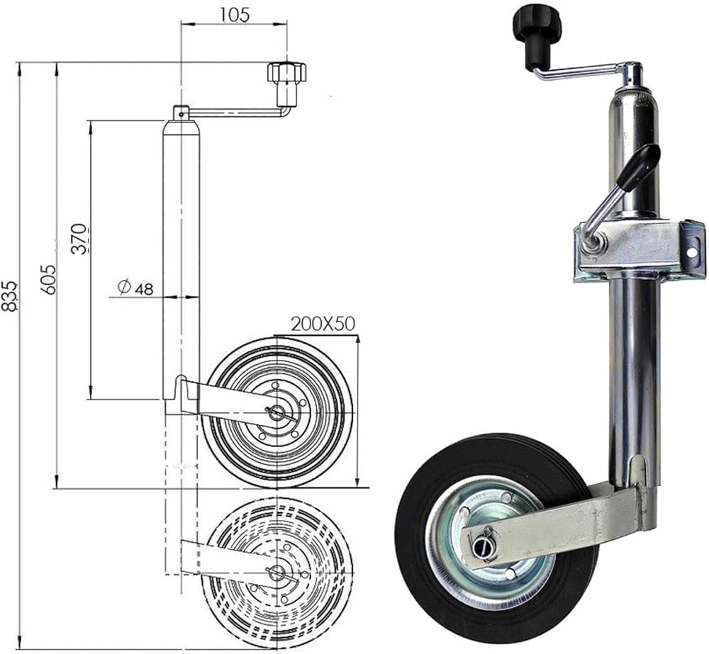 - 【High Load Bearing Capacity】: Boat trailer jack is made of quality iron galvanized and rubber wheel material, with a design load bearing capacity of 150kg, which can be used for a long time.