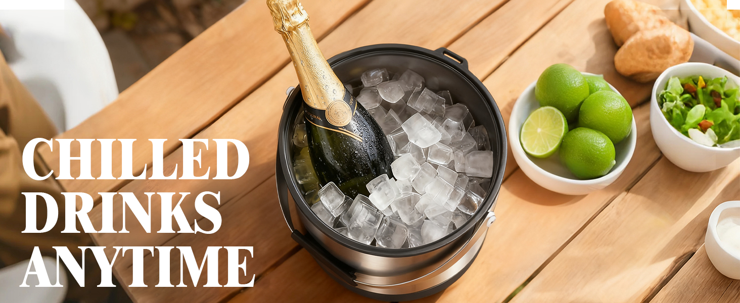 【عزل فراغ مزدوج الجدار 】يضمن البناء المعزول بجدار مزدوج بقاء الثلج والمشروبات باردة لفترة أطول، حتى 20 ساعة، لذلك يبقى النبيذ الخاص بك باردًا تمامًا، ومثاليًا للحفلات أو الترفيه اليومي مع ساعات من المشروبات المنعشة.