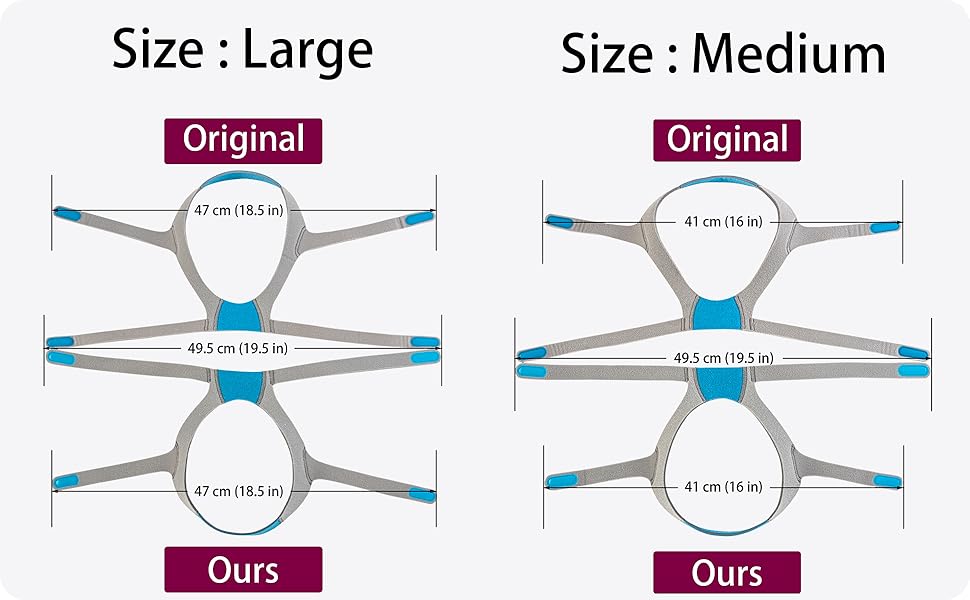 التوافق: أكبر عيب في شراء ملحقات جهاز ضغط المجرى الهوائي الإيجابي المستمر (CPAP) من طرف ثالث هو أن غطاء الرأس غالبًا ما يكون غير متوافق مع القناع. تم تصميم غطاء الرأس هذا خصيصًا ليكون بديلاً مثاليًا لقناع الأنف ResMed AirFit/AirTouch N20. يتطابق حجم الحزام مع أغطية الرأس الرسمية المتوسطة/القياسية والكبيرة تمامًا.