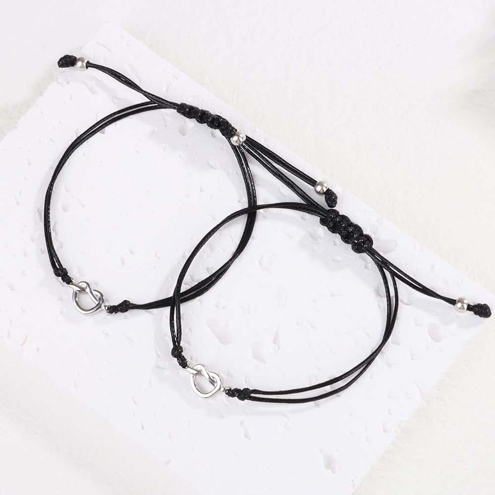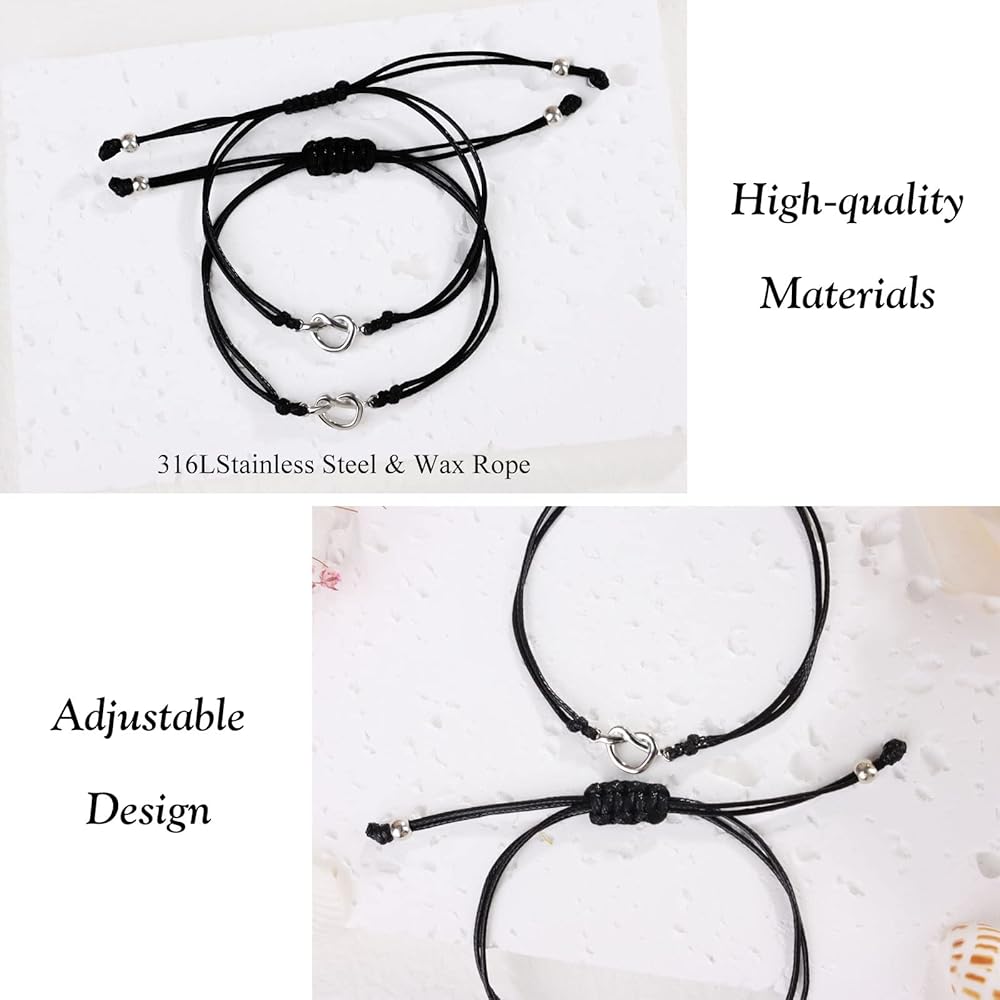 【المادة والحجم】: مصنوعة من حبل شمع عالي الجودة، قوي ومتين. مع سحر عقدة من الفولاذ المقاوم للصدأ، مصقول بدرجة عالية، ليس من السهل تشويهه أو تغيير الألوان، لا يسبب الحساسية وآمن للبشرة الحساسة. وهذه الأساور لأفضل الأصدقاء قابلة للتعديل، الحد الأقصى لطول السوار هو 9.8 سم.