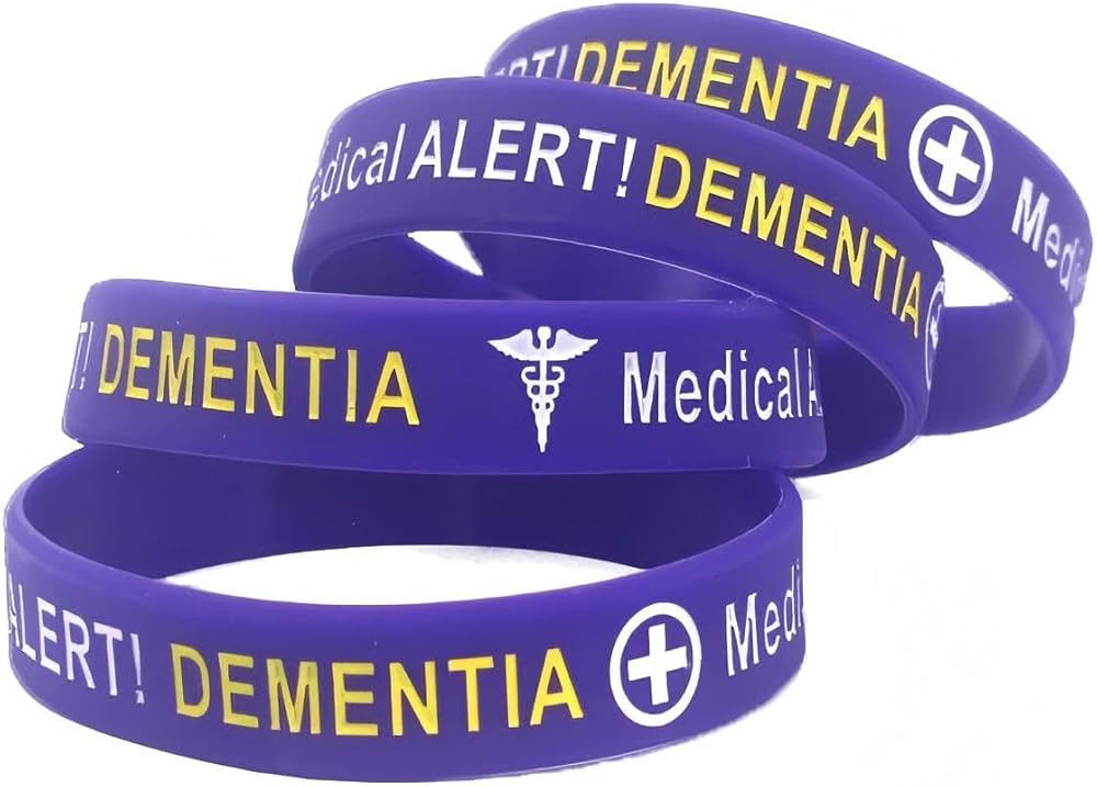 Ideal for Dementia: This 4-pack silicone wristband is specifically designed for individuals with dementia, serving as an emergency medical alert bracelet to help others recognize the wearer's health conditions and provide timely assistance.