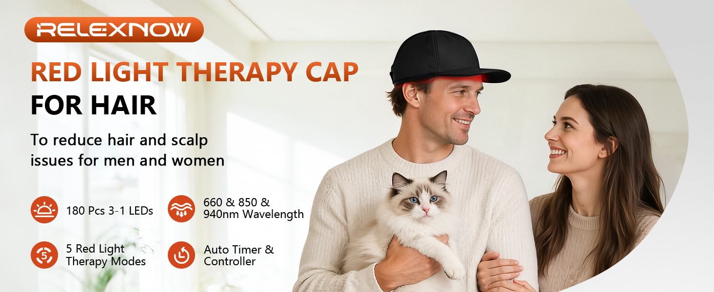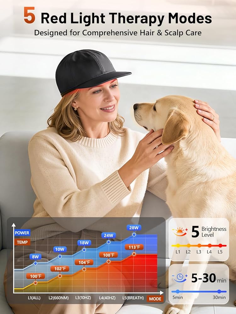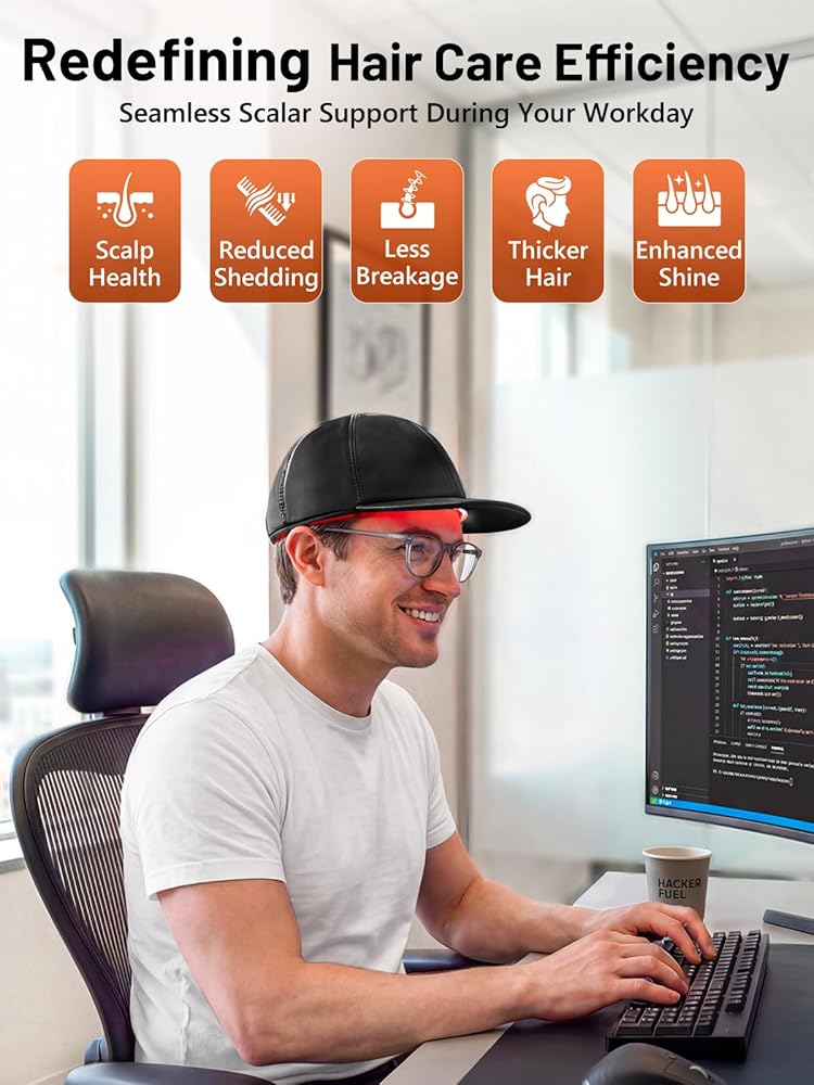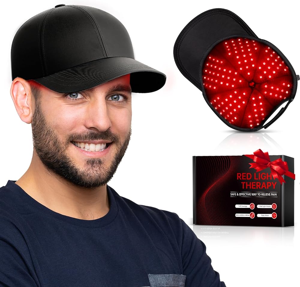 قبعة العلاج بالضوء الأحمر للشعر من ريليكسنو، معالجة بالضوء الأحمر 180 مصباح LED مطورة للرأس، العلاج بالضوء بالأشعة تحت الحمراء للرجال والنساء مع مؤقت وجهاز تحكم (أسود عميق)