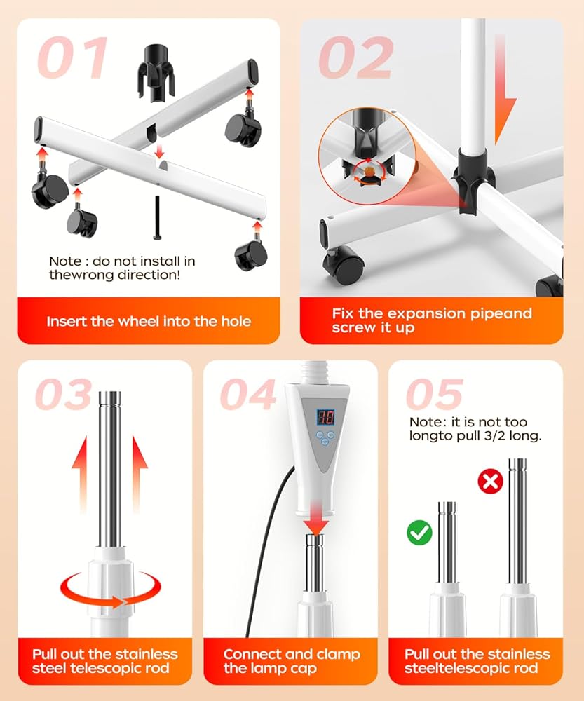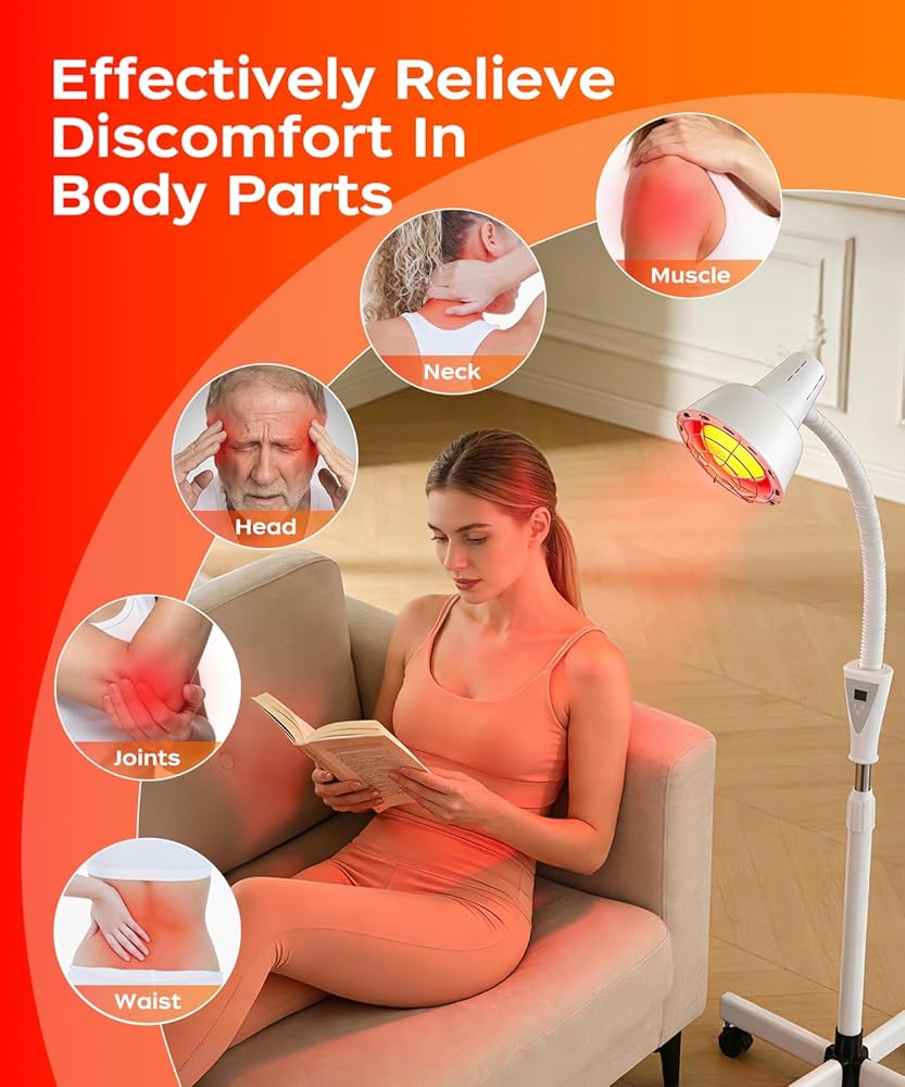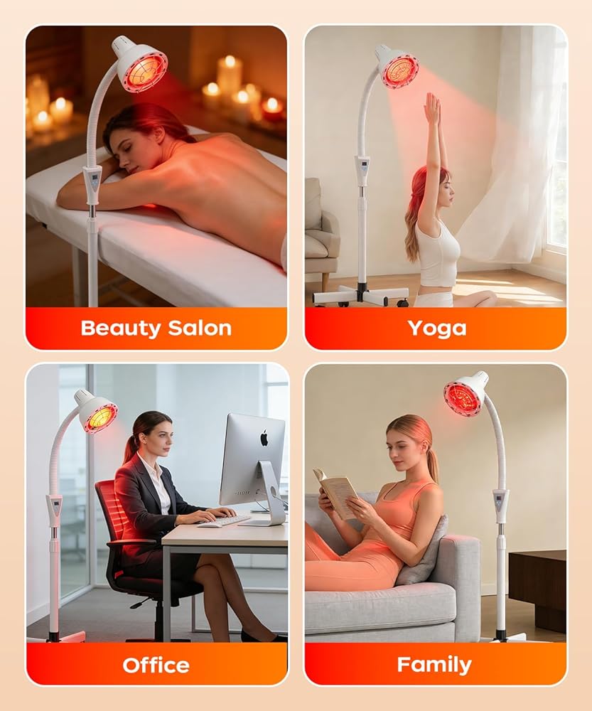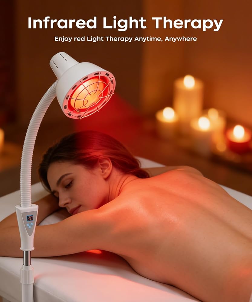 حامل قوي للعلاج بالأشعة تحت الحمراء من أجل وضع ثابت: مصنوع من حامل متين للعلاج بالأشعة تحت الحمراء، يبقى المصباح متوازنًا أثناء الاستخدام لفترة طويلة، حتى مع تعديلات الزاوية المتكررة. يتناسب تصميمه خفيف الوزن جيدًا مع غرف النوم أو غرف المعيشة أو صالات الألعاب الرياضية المنزلية دون أن يشغل مساحة كبيرة.