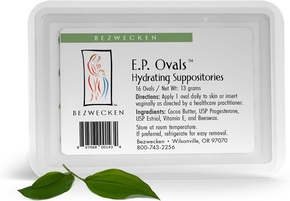 - بيزويكن إي.بي. تستخدم الأشكال البيضاوية عادة لجفاف المهبل المرتبط بانقطاع الطمث